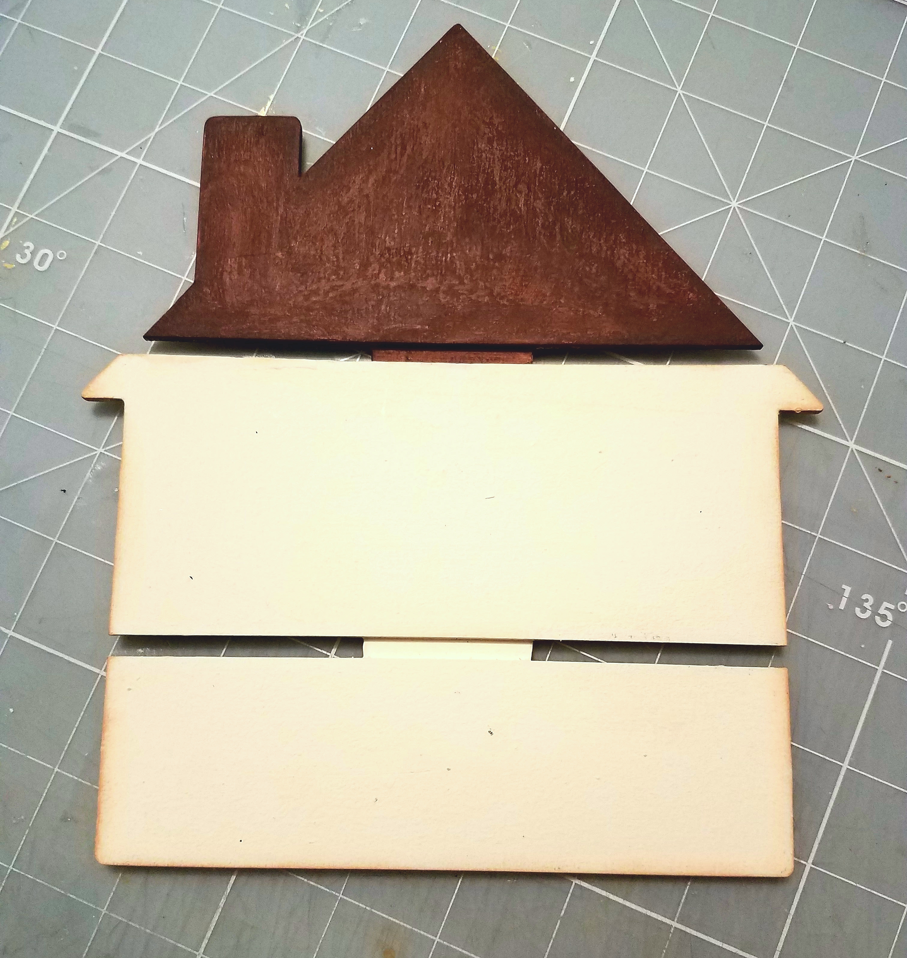 Remove the label from your wooden pallet. Paint the roof and chimney using brown acrylic paint. Then paint the next two pallets with Folk art Sheepskin paint. You can buy the chalk paint Click Here.