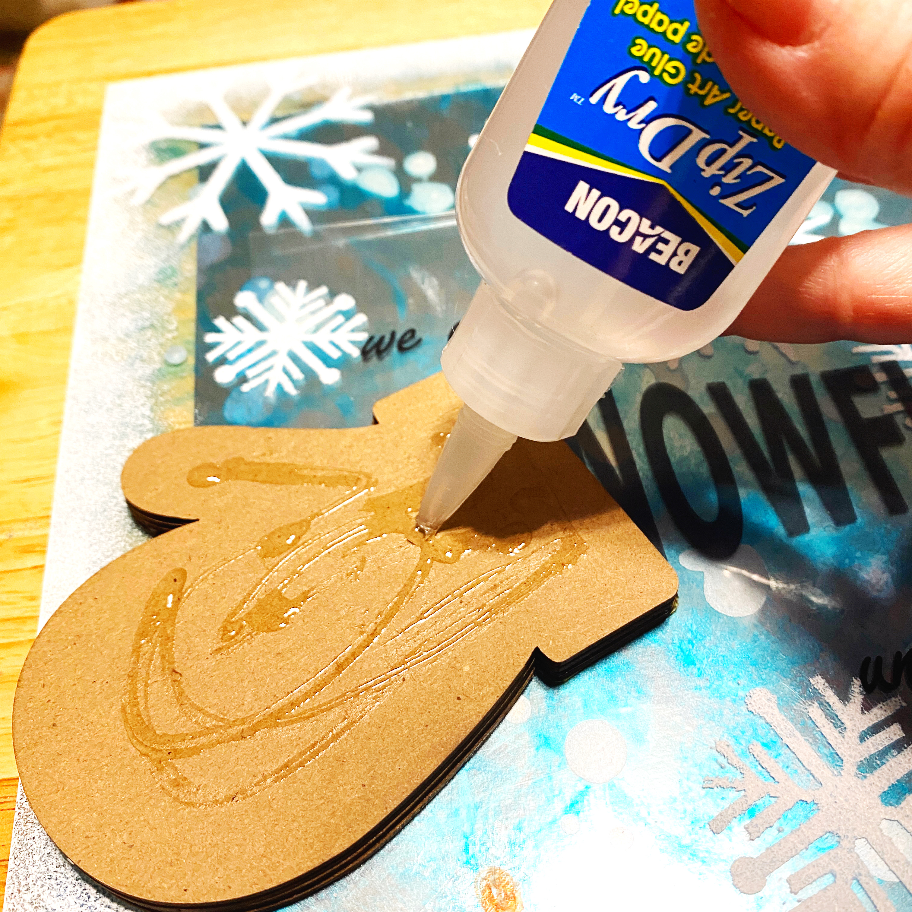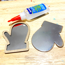 I used Zip Dry to adhere the mittens to the sign, making sure their placement covered the adhesive…