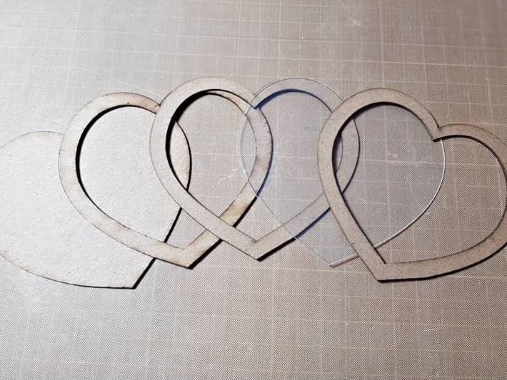 ▼ Here I glued two chip forms and put in the sprinkles heart confetti. Next, I removed the protective films on the acrylic divider and glued it to cover the heart.