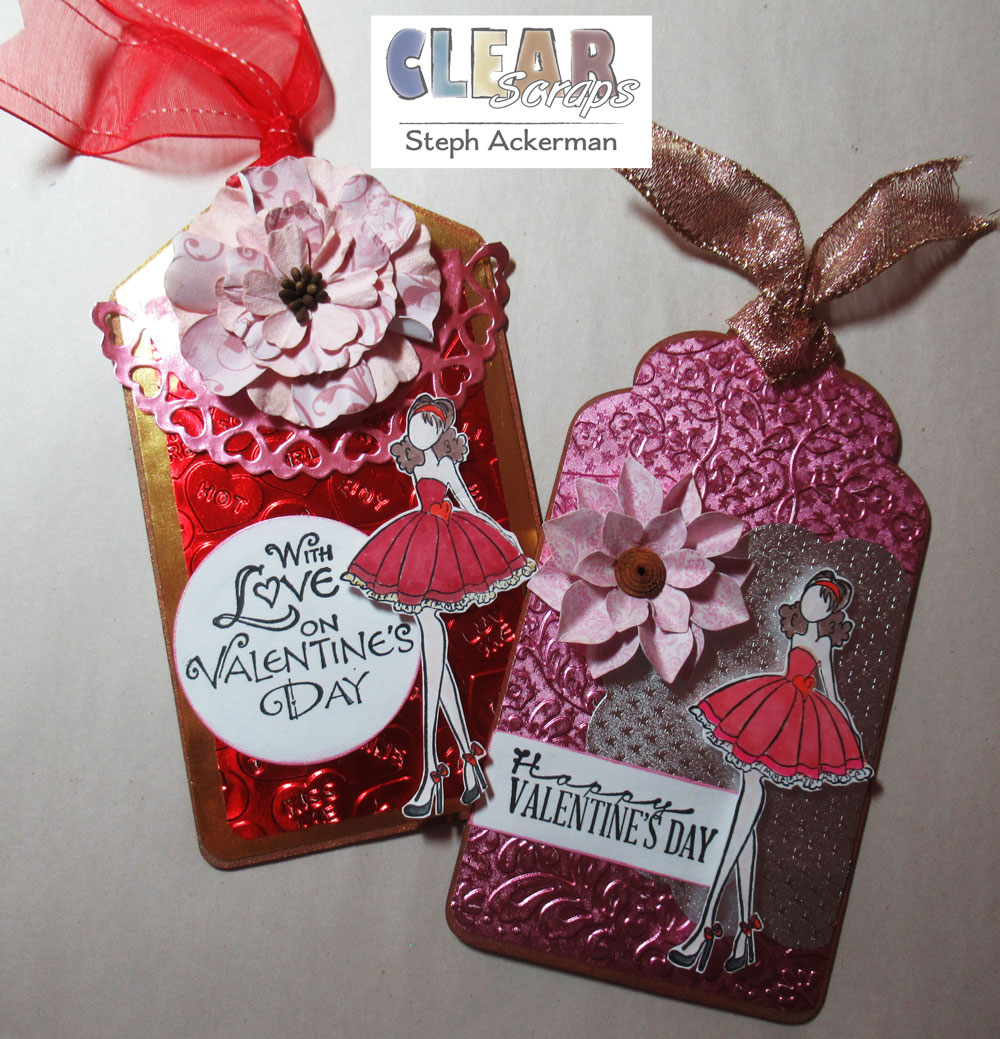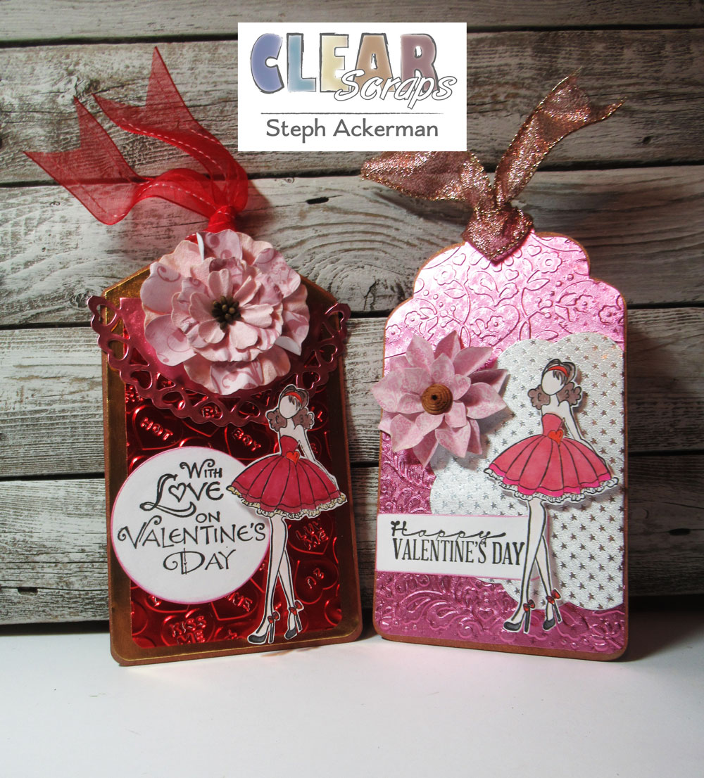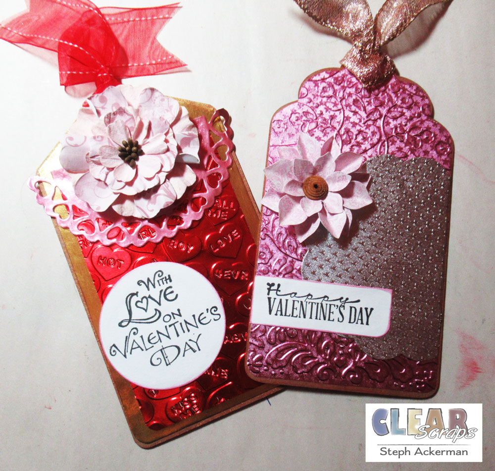 Hi everyone, Steph Ackerman here today working with tags from the Chipboard Tag Album. The tag album consists of 4 different shaped tags, and I selected 2 to use for a set of special Valentine's Day Tags.
