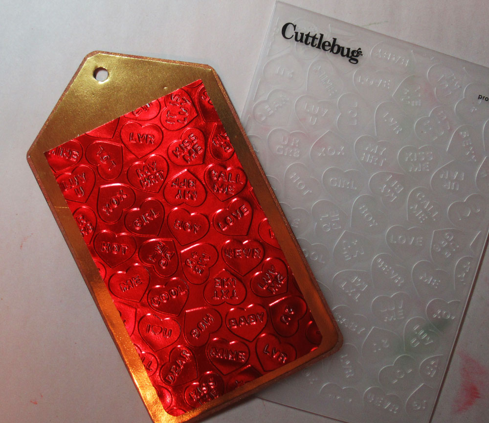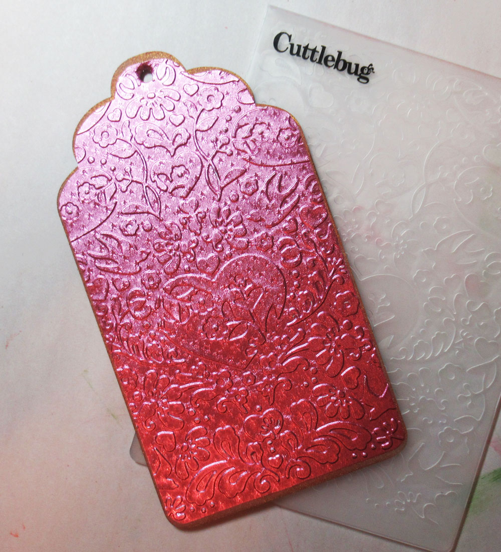 I repeated the process for the second tag but used pink foil for the tag and used a different embossing folder.