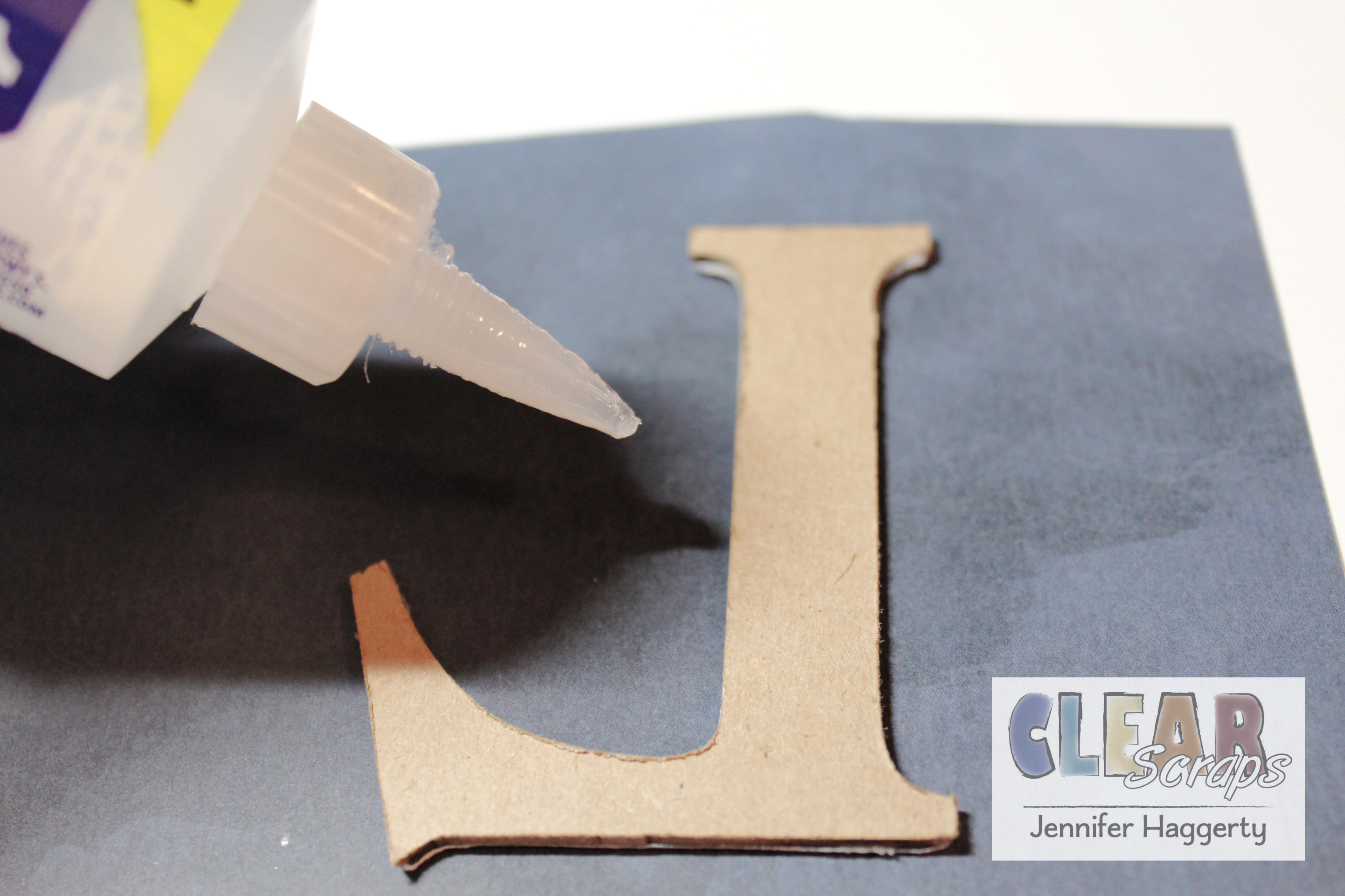 I cut the letters away from the chipboard frame they are packaged in ensuring to snip any excess tabs. Using my Beacon 3-in-1 Adhesive, I adhered patterned paper to the front of each letter.
