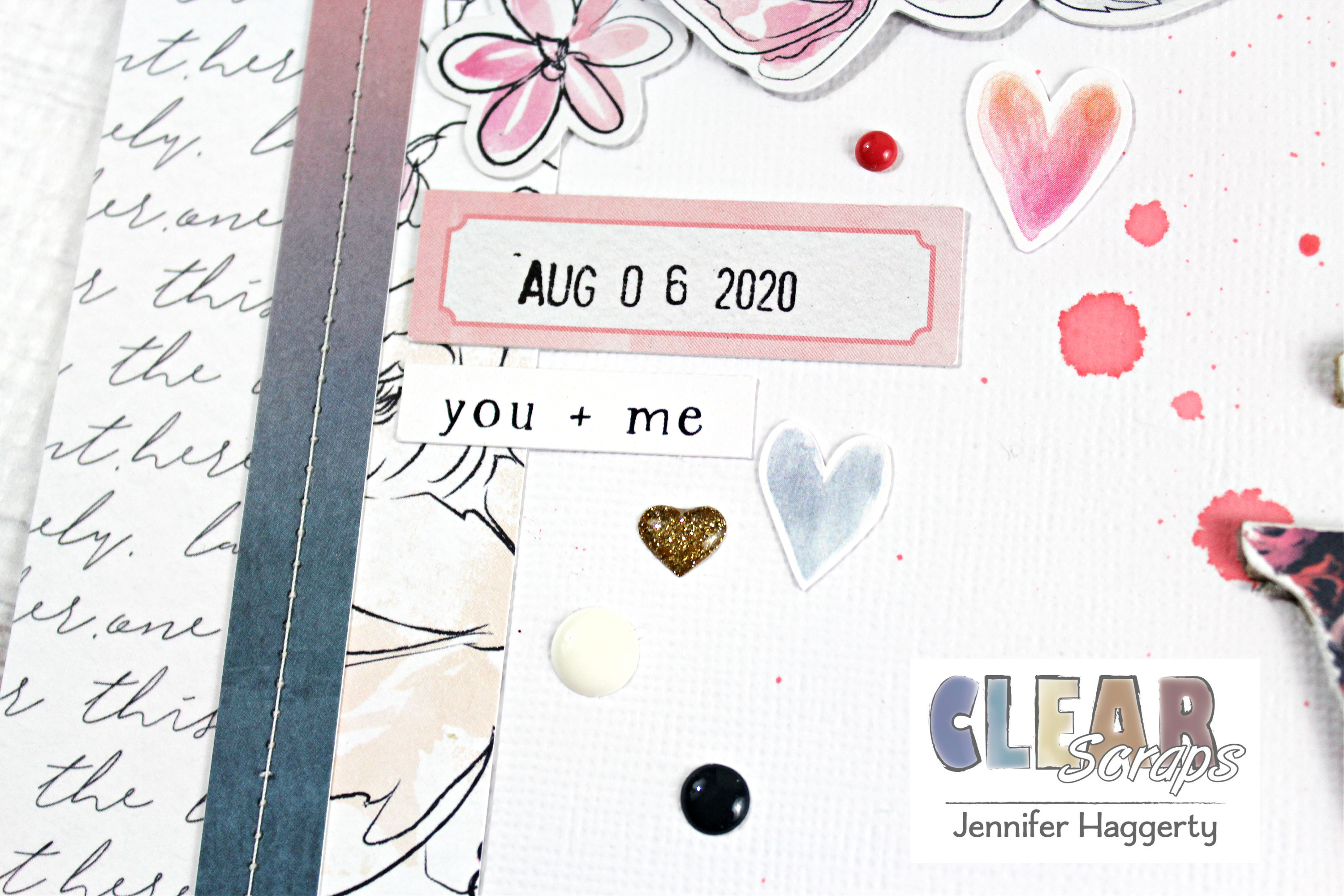 For accent, I added die cut floweres and hearts around my photo using pop dots to give dimension.