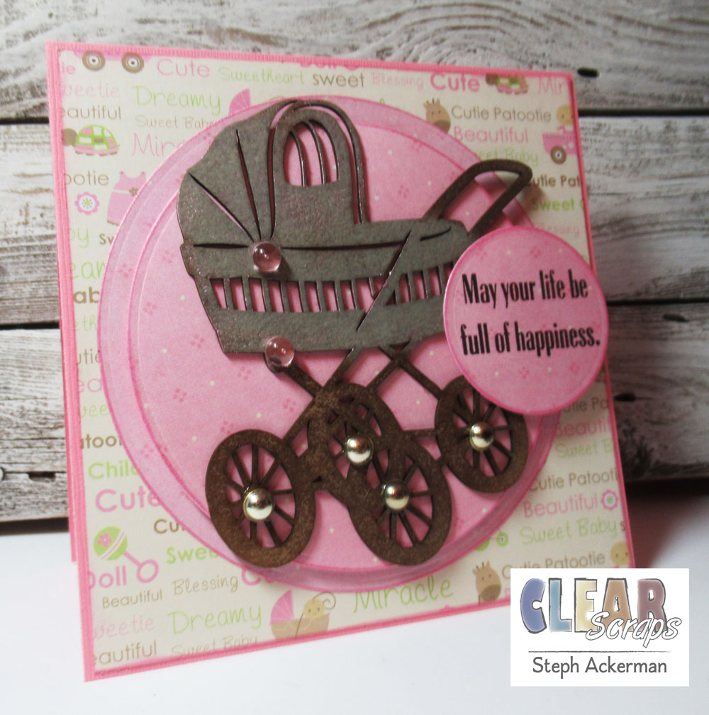 Hi everyone, Steph Ackerman here today with a new baby card using the Stroller Chipboard Embellishment.