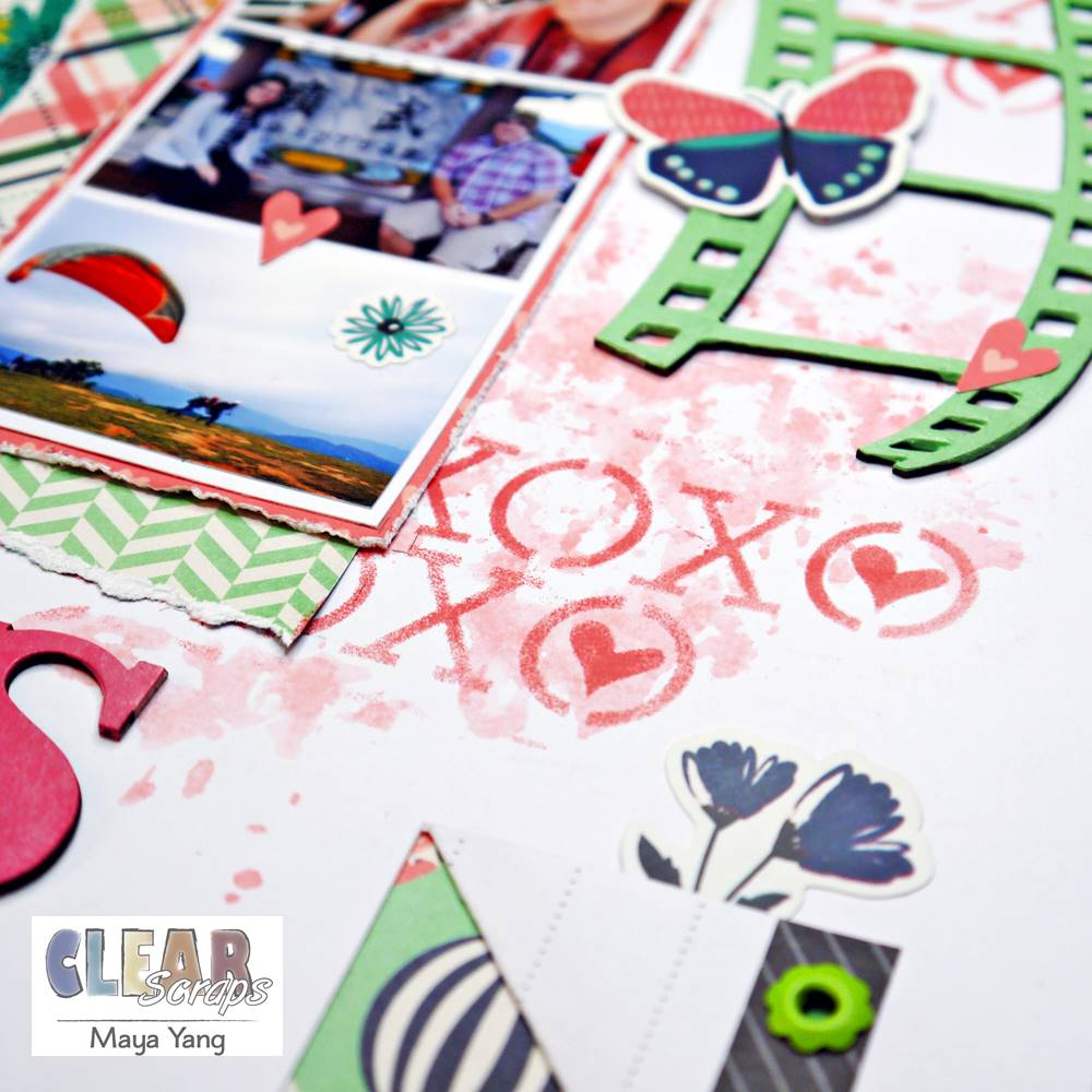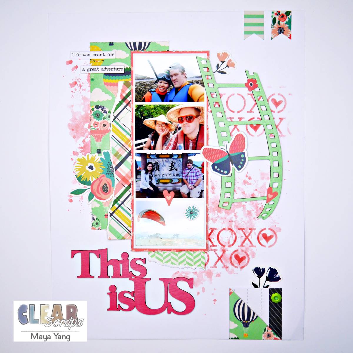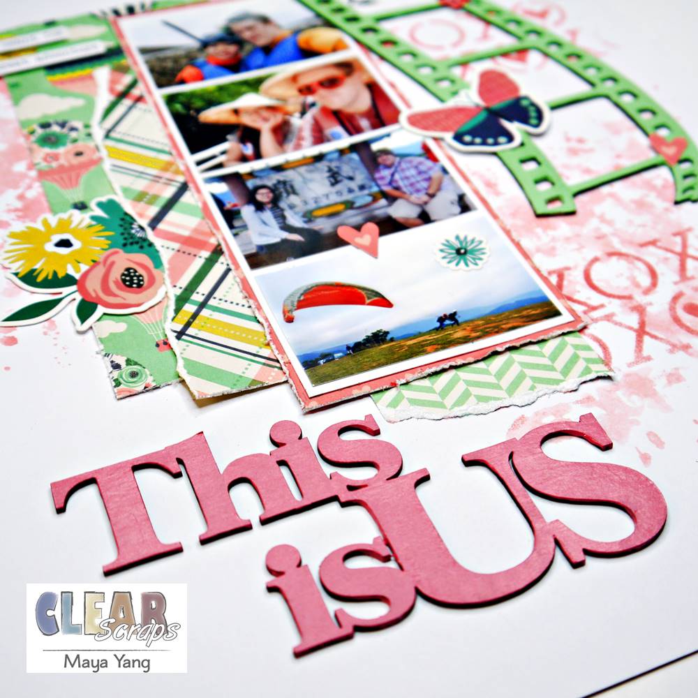 Greetings! Maya on the blog today here to share this 8.5 x 11 layout using a film strip chipboard and This is Us chipboard word title! I also used the 6'' XOXO stencil for the background. The chipboards are great to use on the layouts and they definitely gave this layout a dimensional look. I love how it turned out!