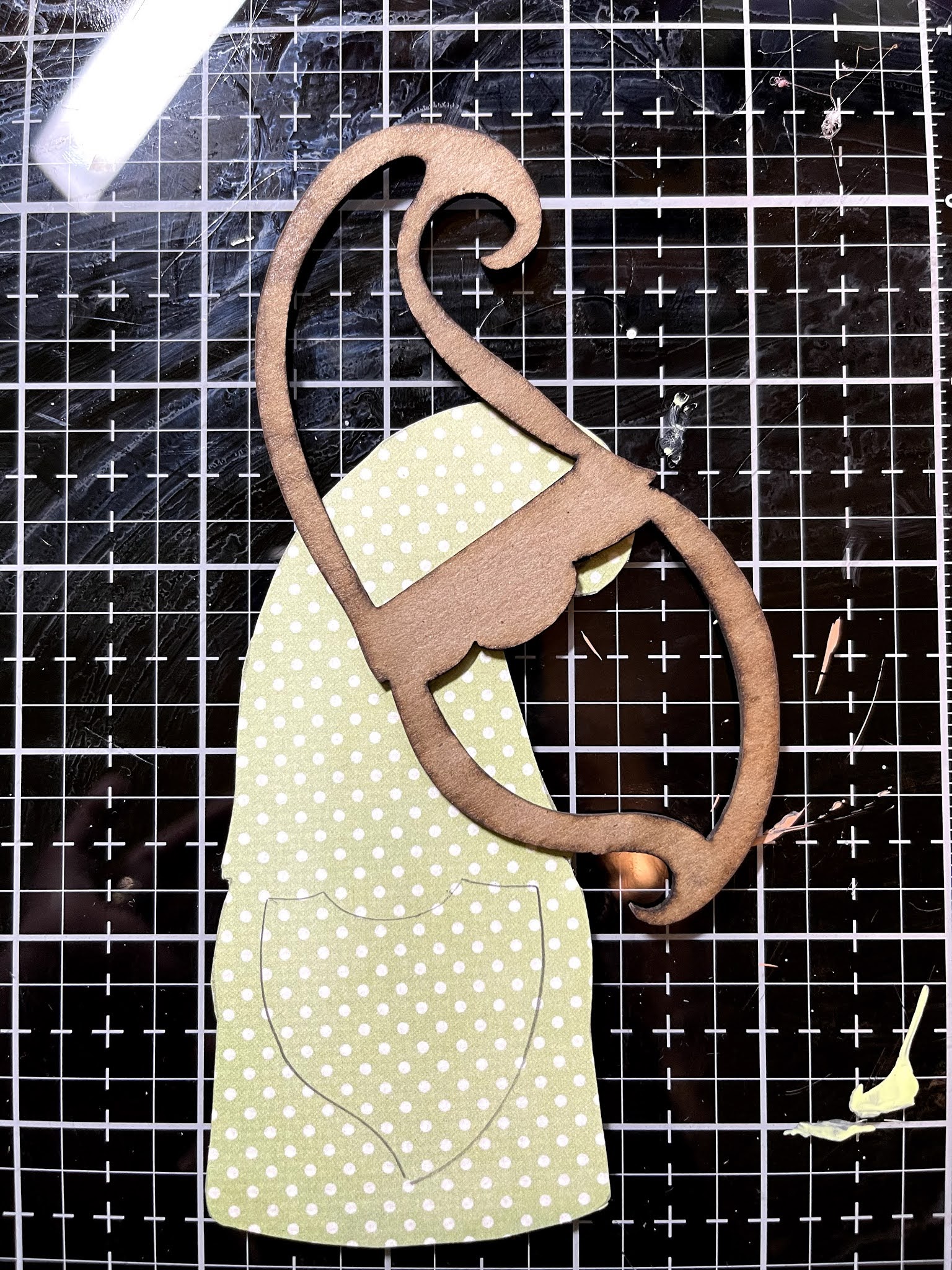 Using a layer piece from your shaker set, trace beard onto your base and paint orange.