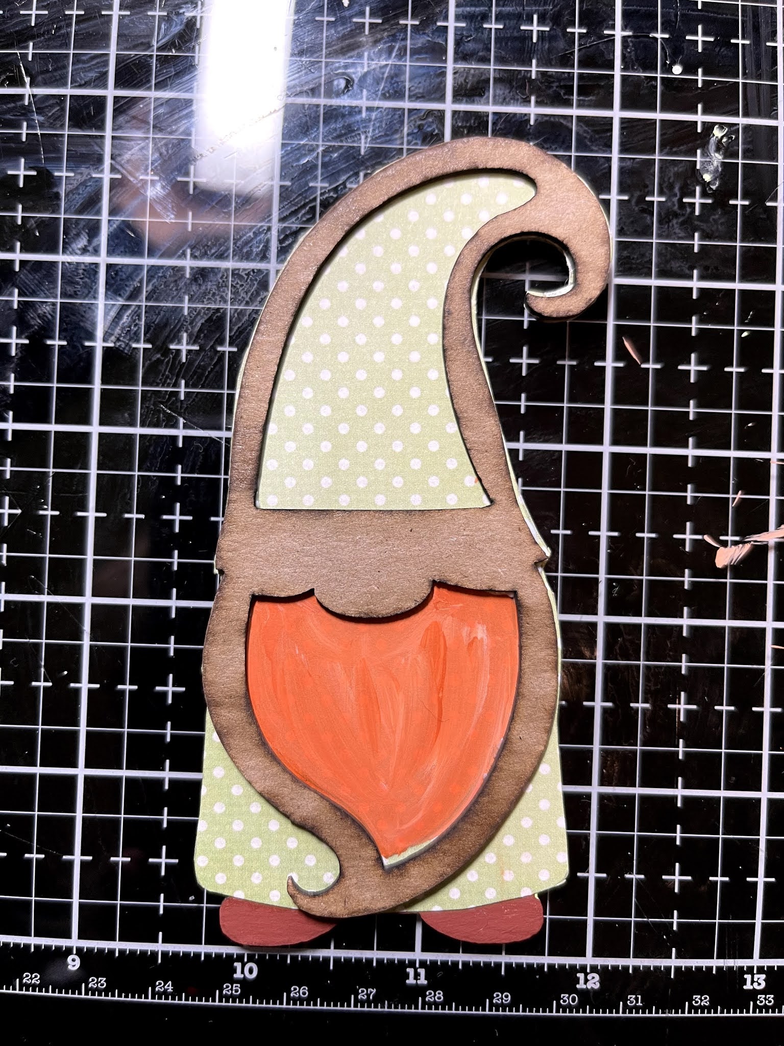 Adhere your painted paper gnome to your shaker base.