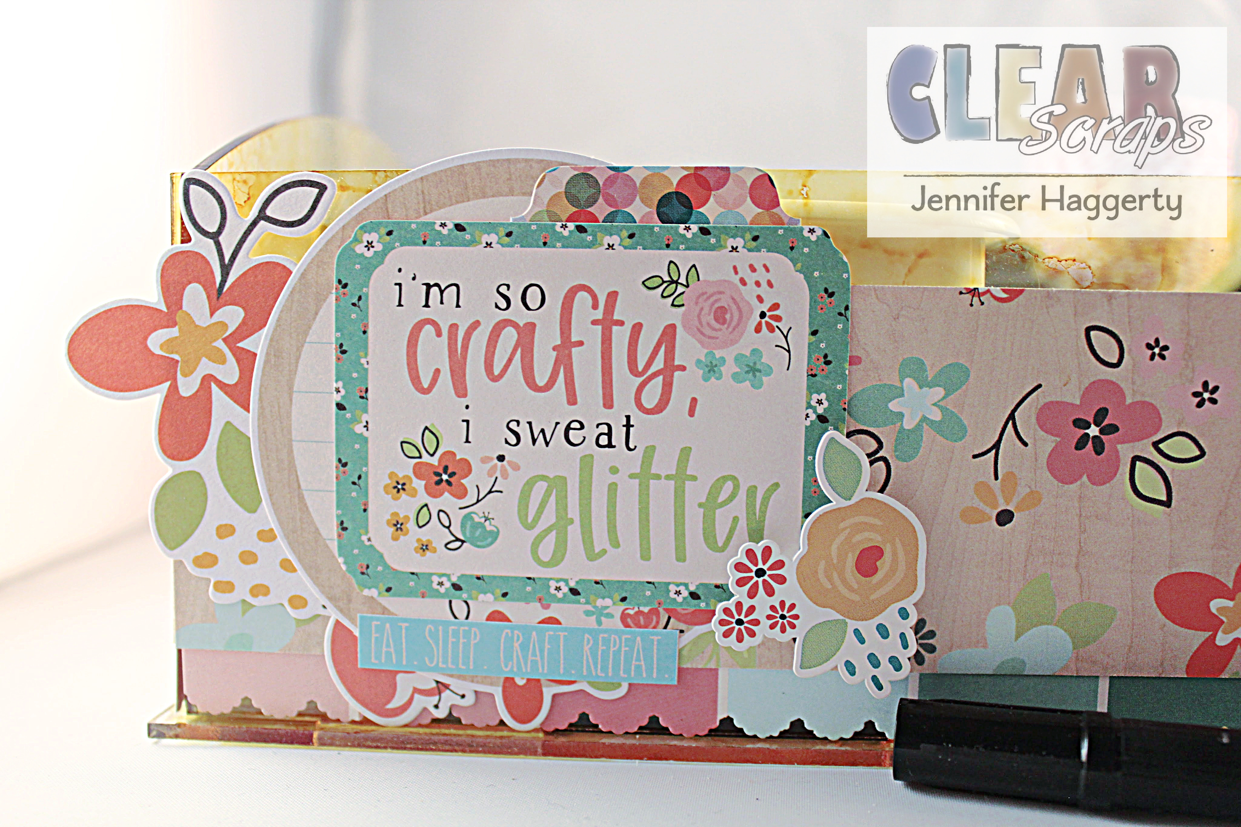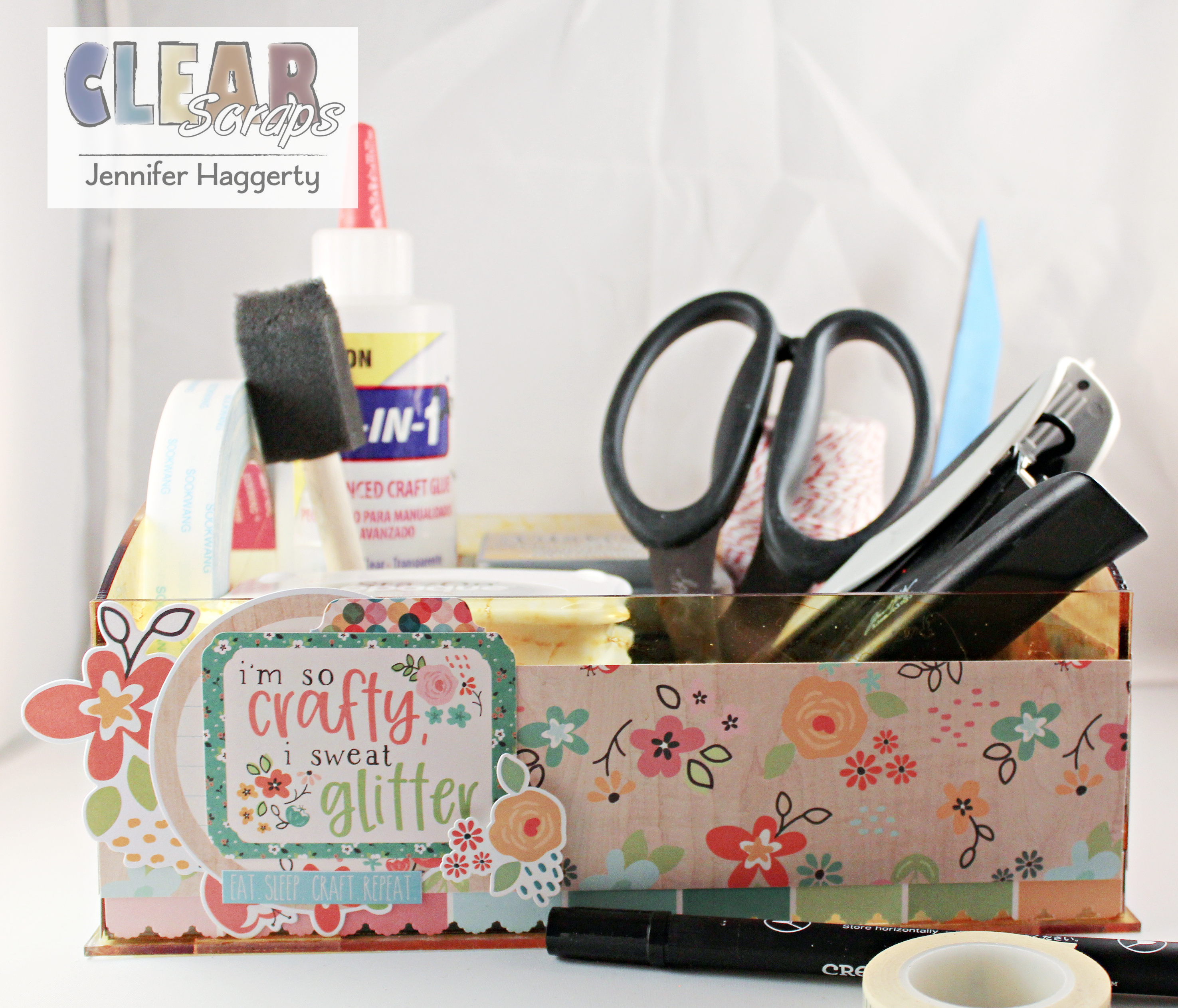 Hello and happy Saturday! It's Jennifer here on the blog today to share a project with you! Like most of us, we all need ideas when it comes to organizing our craft supplies! And when you can make something cute and personable, its even better! The Clear Acrylic Tray Box, measuring 6×9 inches, is the perfect size to fit everything you use to be within hands reach in your craft space!