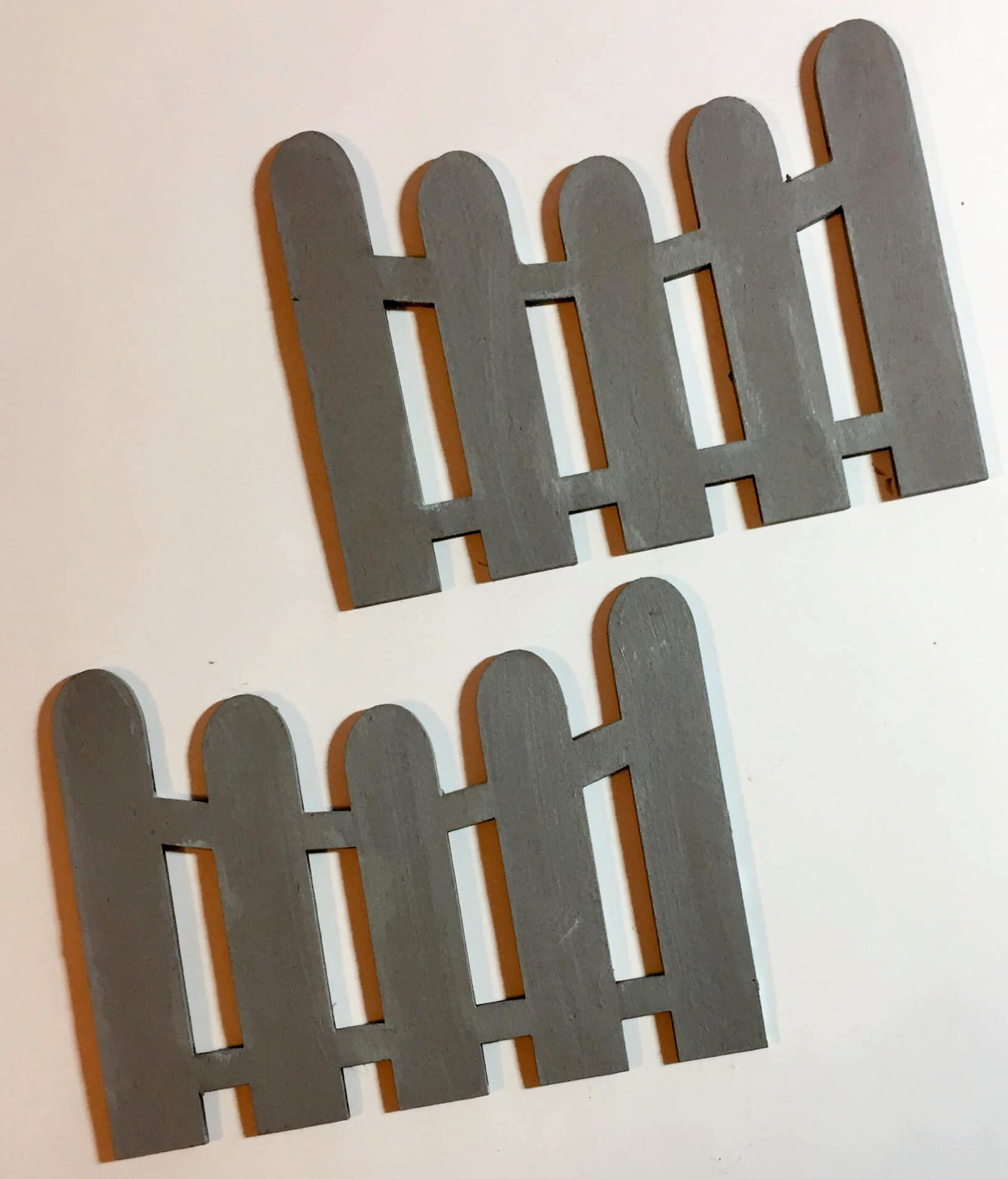 While the base dried, I painted the cute little Fence Chipboard Embellishments.
