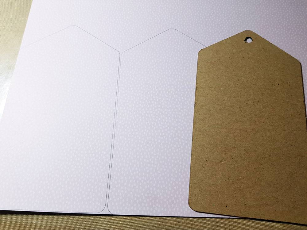 ▼ I started by tracing the chipboard tags on the patterned papers, cutting them out, and adhering to the chipboard tags with tacky glue.