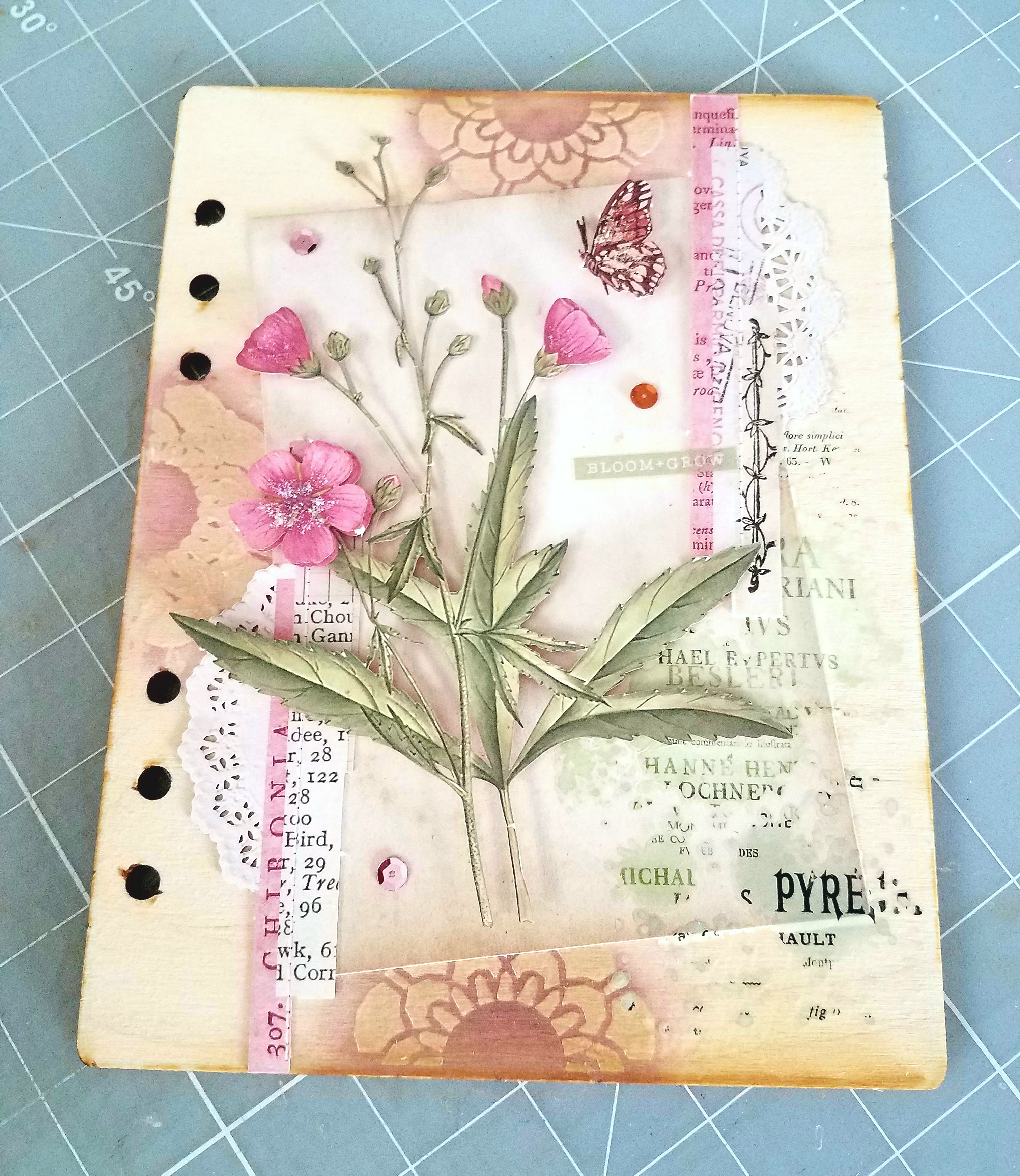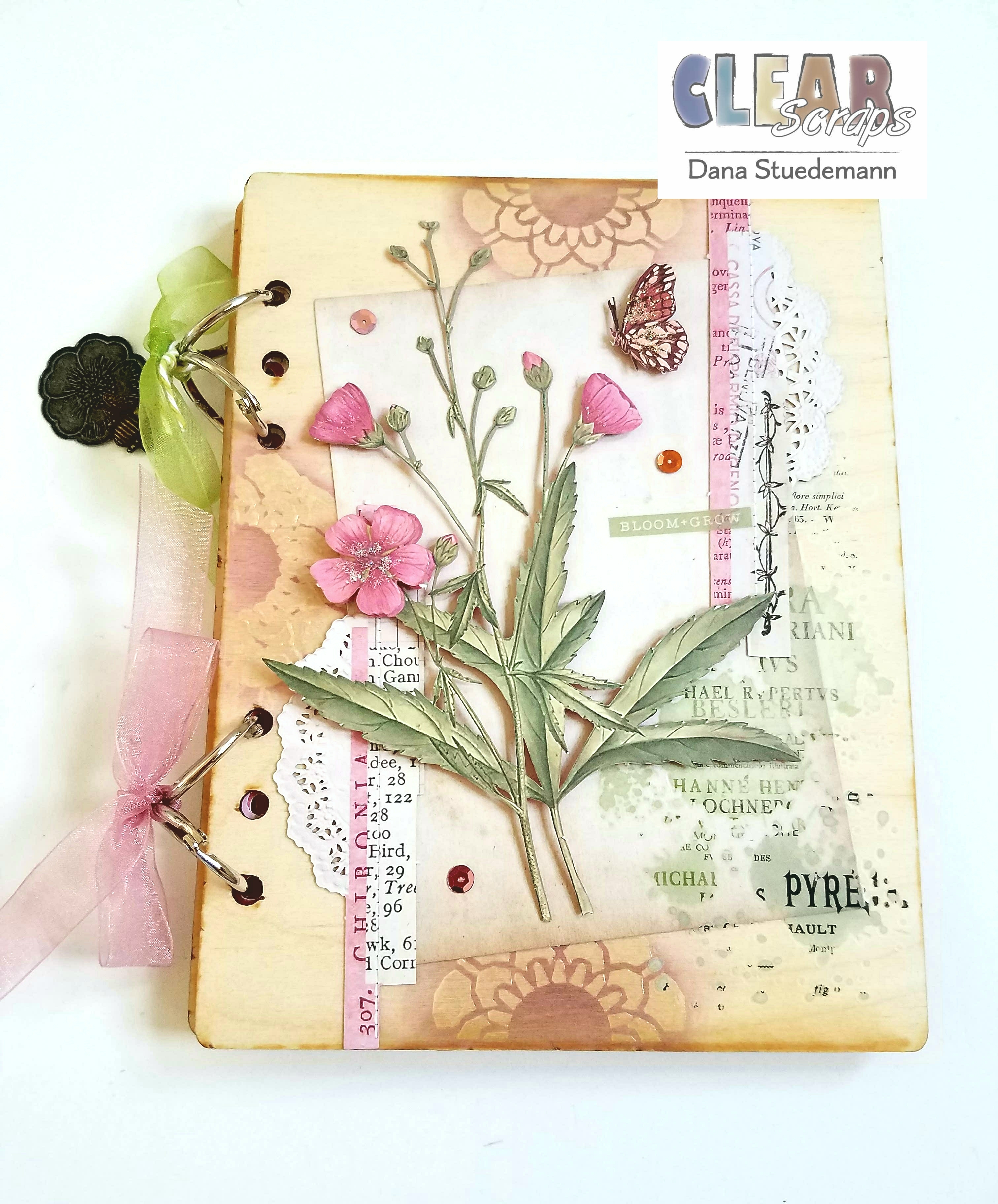 I'm so looking forward to Spring aren't you? I love the beauty of blooming flowers and gardens. For today's project, I'm creating a garden journal using Clear Scraps Wood blank album Click Here and 6×6 Doily stencil Click Here