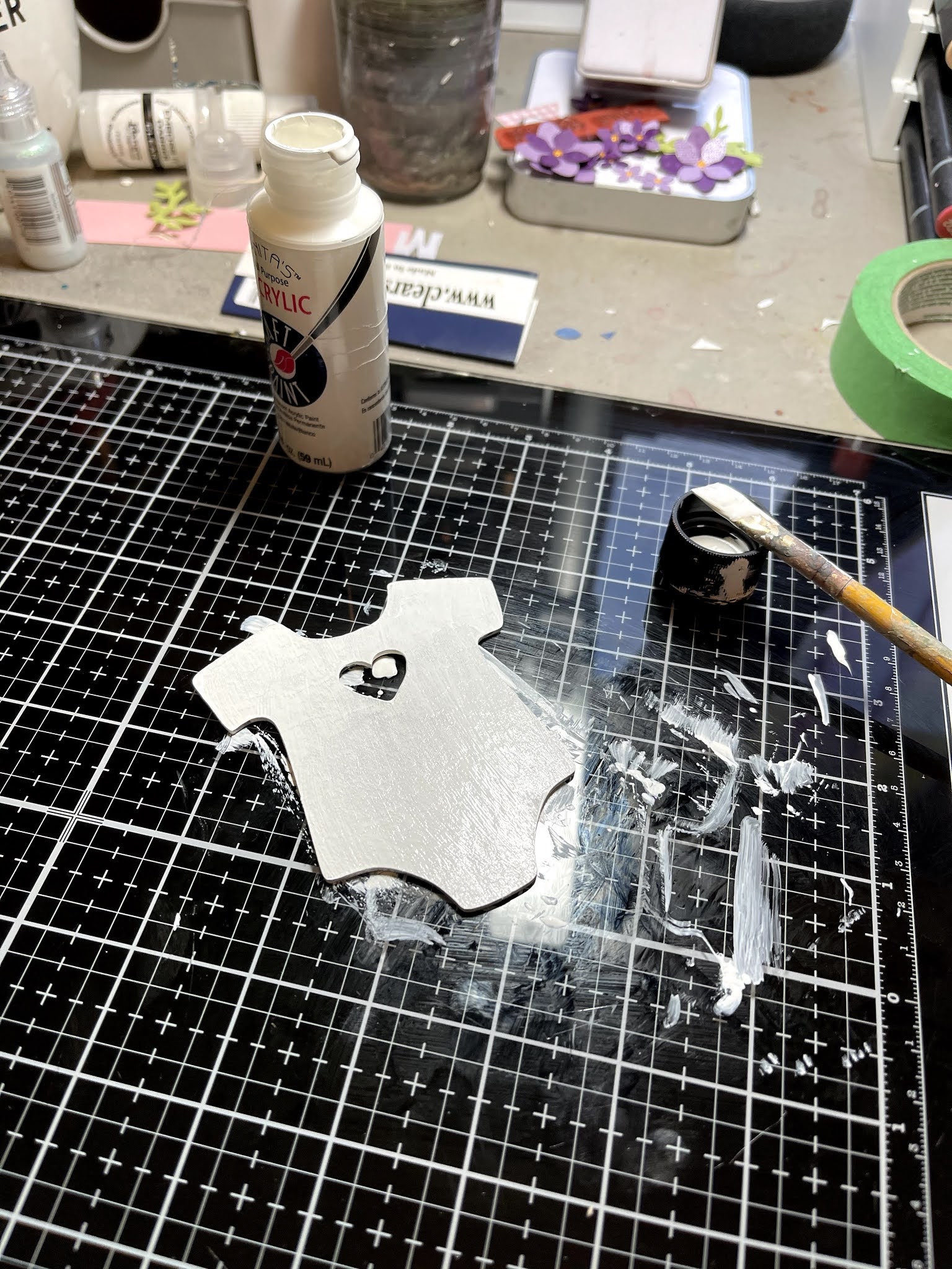 Start by painting your Clear Scraps Onsie Chipboard with white paint. It may take 2 coats to get a "true" white look.