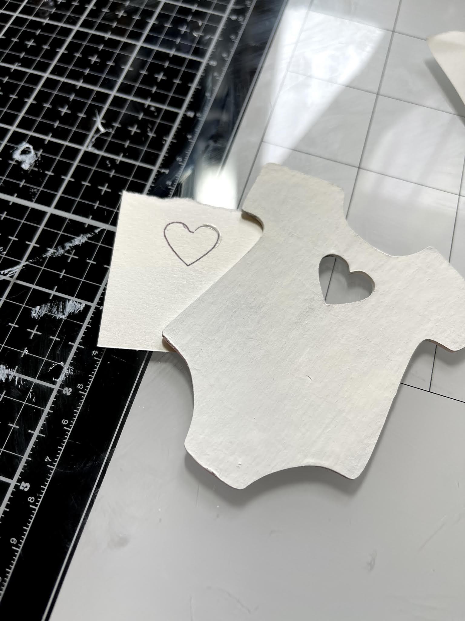Cut a piece of cardstock and trace heart from your Clear Scraps Onsie Chipboard.