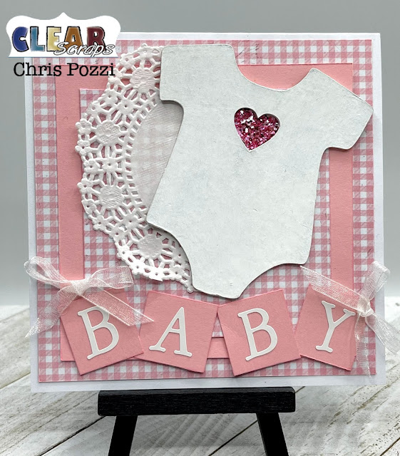 Greetings! Chris here and today I am excited to share this adorable pink baby card I created with my Clear Scraps Chipboard. To recreate this card you will need the following: