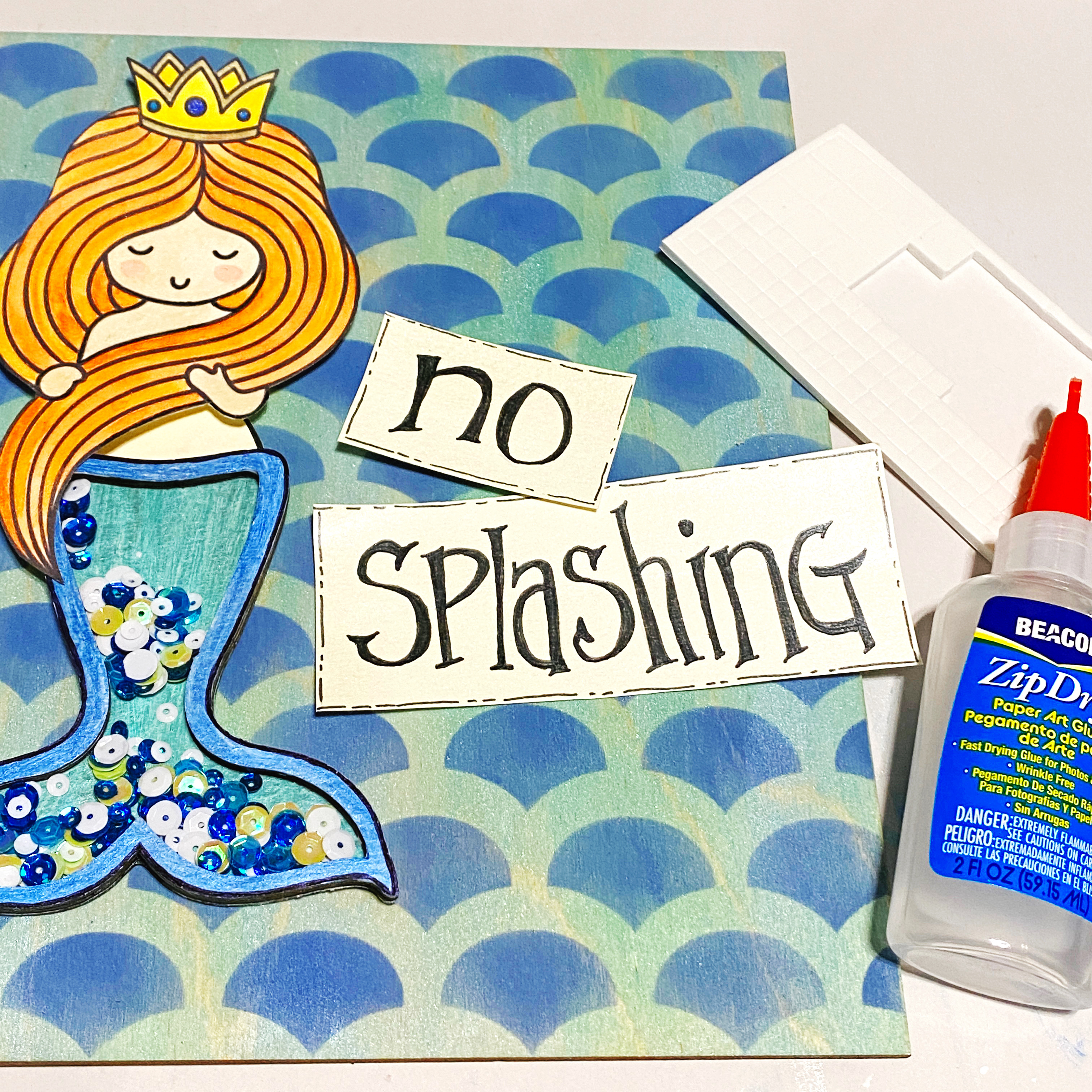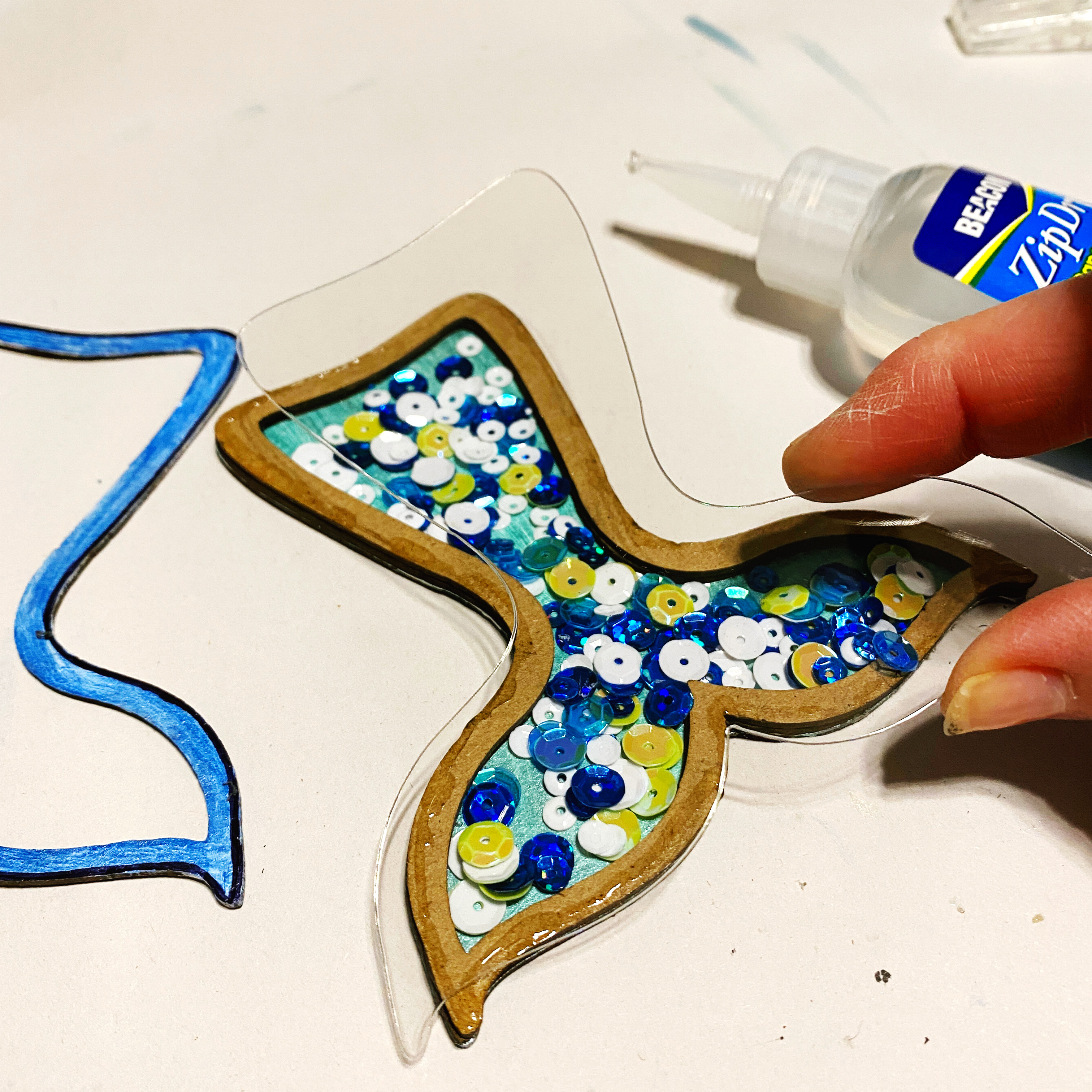 Next, I cut out the mermaid design and adhered it to the Fin Shaker…