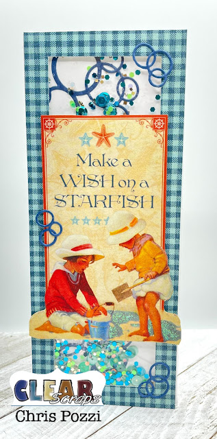 Summery Greetings! Today I am excited to share this summery shaker card I created with Clear Scraps Acrylic Sheets. The Acrylic Sheets make it so easy to create your own custom shaker in any size!