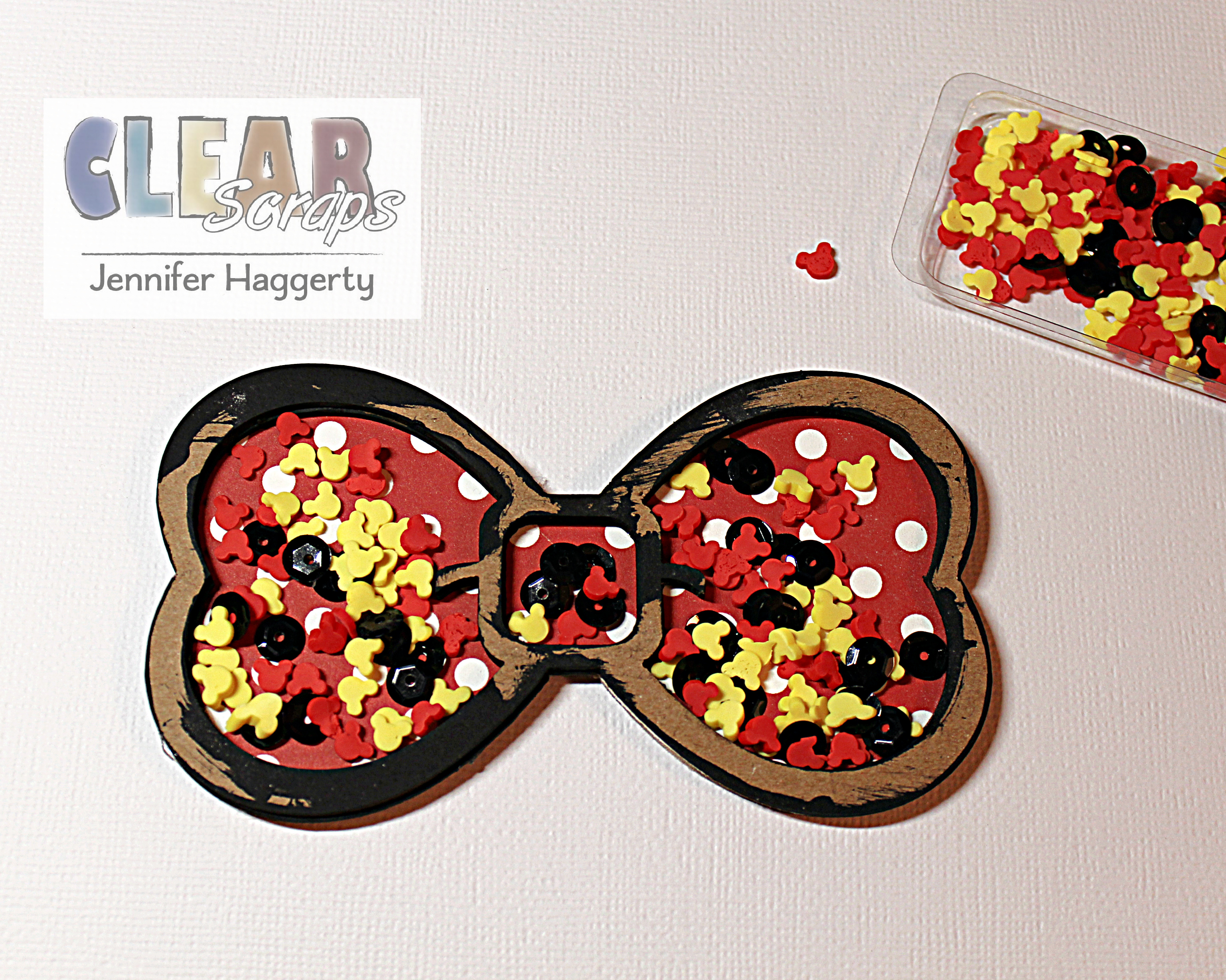 Before adhering my acrylic piece, I filled the shaker with the new Magical Medley Sprinkles! These are so cute with yellow and red mouse heads and black sequins!