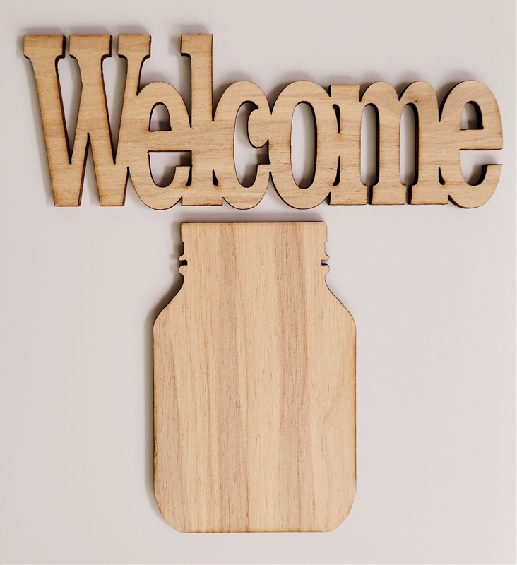 ▼ On this project, I used the scallop frame and welcome and jar wood pieces.