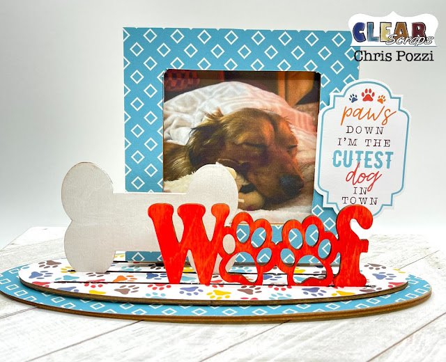 Today I am super excited to share this adorable Changeable Frame from Clear Scraps! These frames are designed to be mixed and matched to your heart's desire! My Changeable frame features my adorable Grand-pup Tommy! And this will make an awesome gift for his "mommy!"