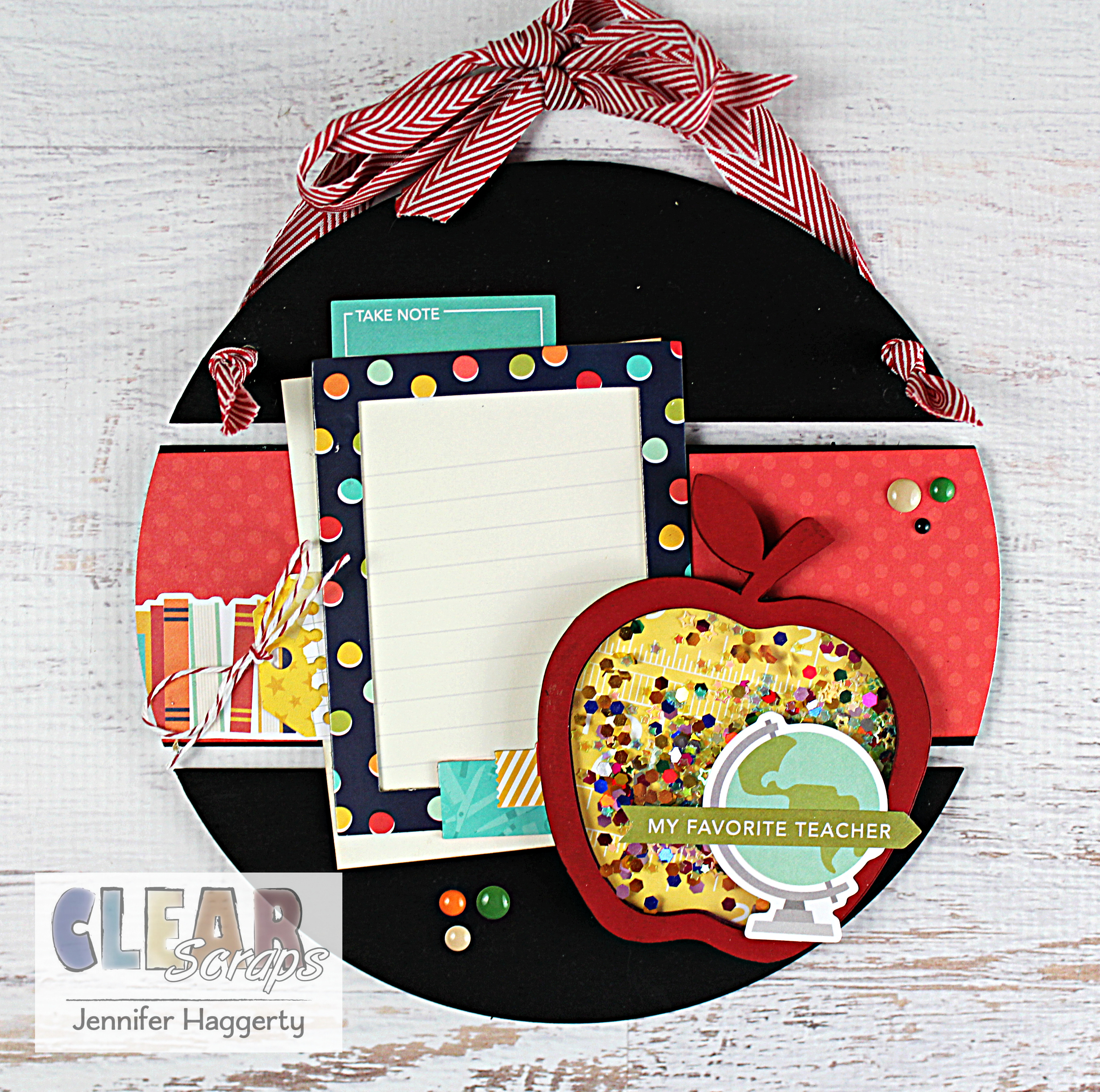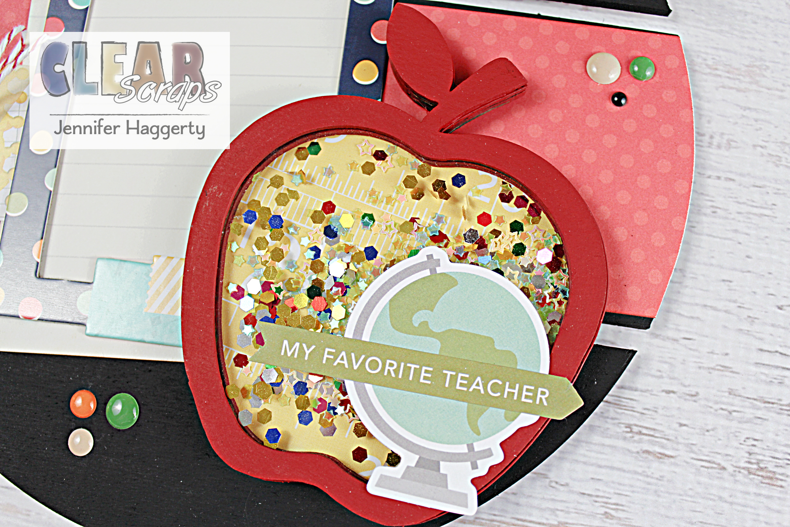 Hello! It's Jennifer on the blog to share an end of the school year project I created using a few of Clear Scraps fabulous products! School is out for the summer here in Central Illinois and I thought this home decor project would be cute either as a teacher gift or to show off a last day of school photo! I used the new Apple Mini Shaker Shape as the star of my creation and will show you the techniques I used.