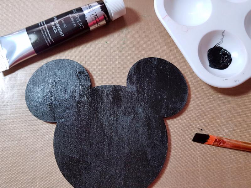 ▼ Here, I painted the mouse head in black as well. Wait until the paint is dry, then use patterned papers and stickers to decorate around the mouse head shape.
