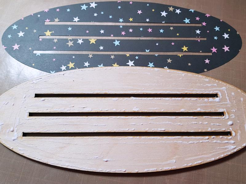 ▼ To start the project, I traced the wood bases on 2 patterned papers, and then cut them out with a carving craft knife.