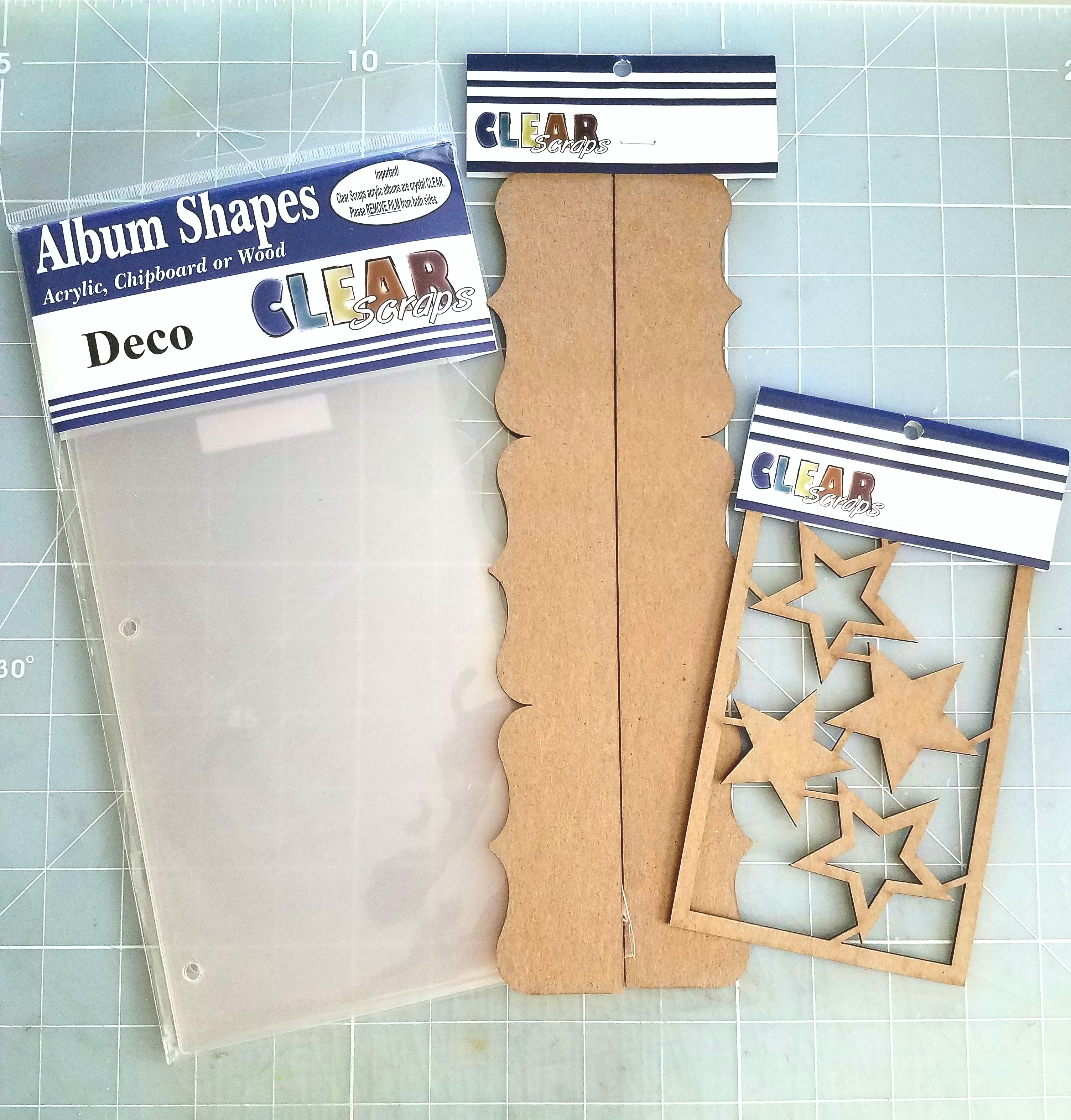Dana here! I love creating mini albums all year long! For today's project, I'm using Clear Scraps new Slimline acrylic album. Click Here I love the sleek Deco style and this will be perfect for all your 4th of July family photos! We'll also be using Clear Scraps Deco Chipboard borders Click Here and Chipboard Multi Stars Click Here
