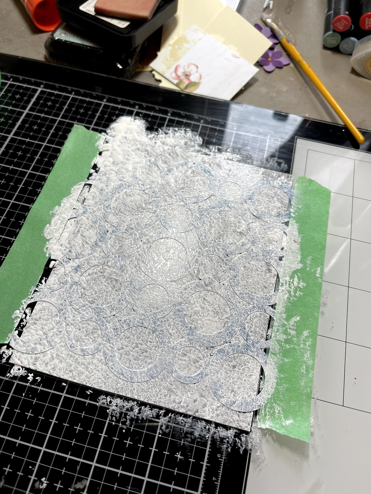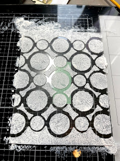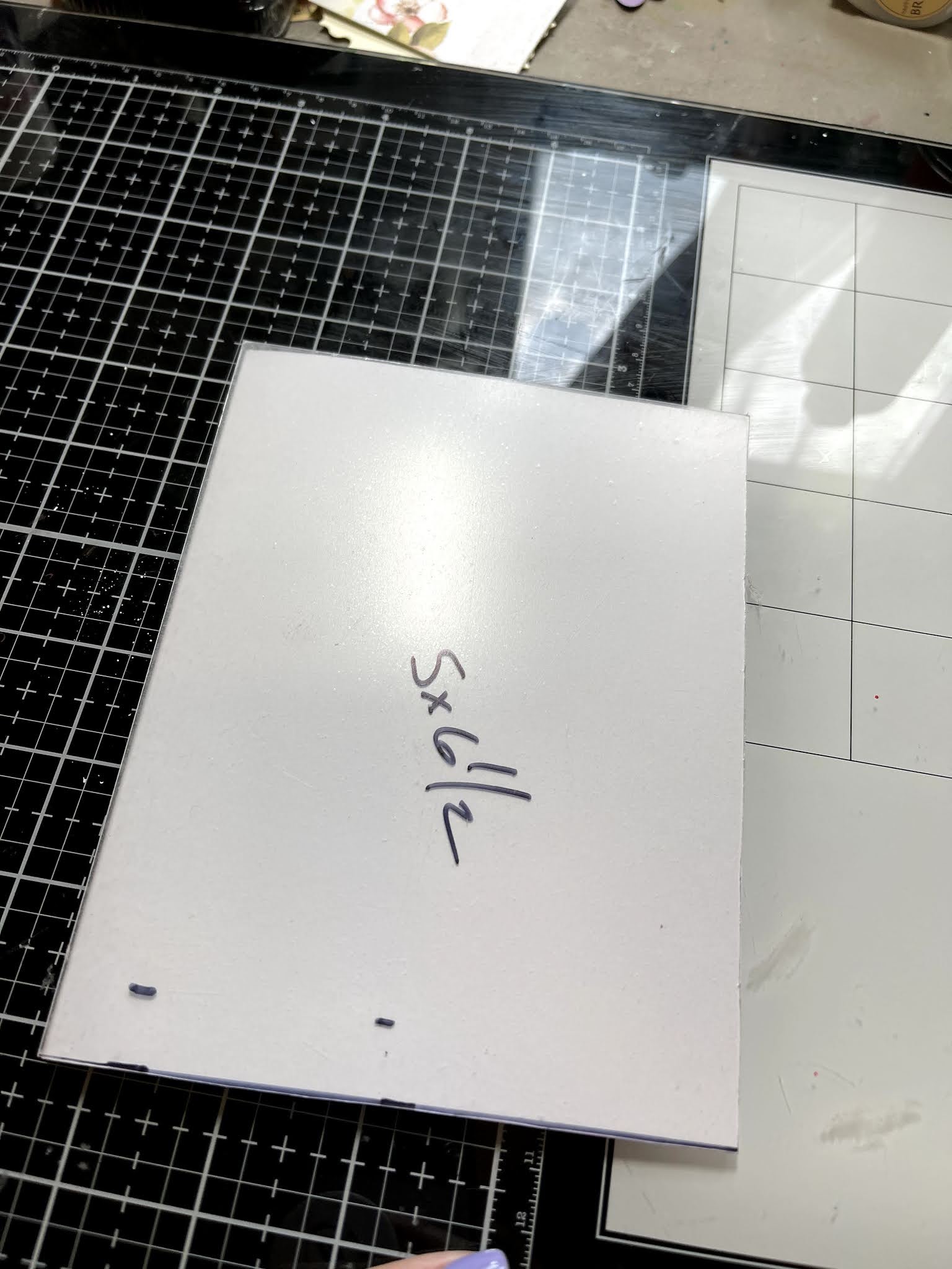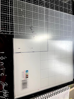 Start by marking your acrylic sheet to cut to fit your card. I always leave the covering on my sheets until the last minute which allows me to mark it up.