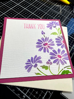 Today I am super excited to share this adorable Stenciled Thank you card I created. I love how fun stencils are to play with! A Stencils are a great way to create fast and easy unique cards in any color and for any occasion.