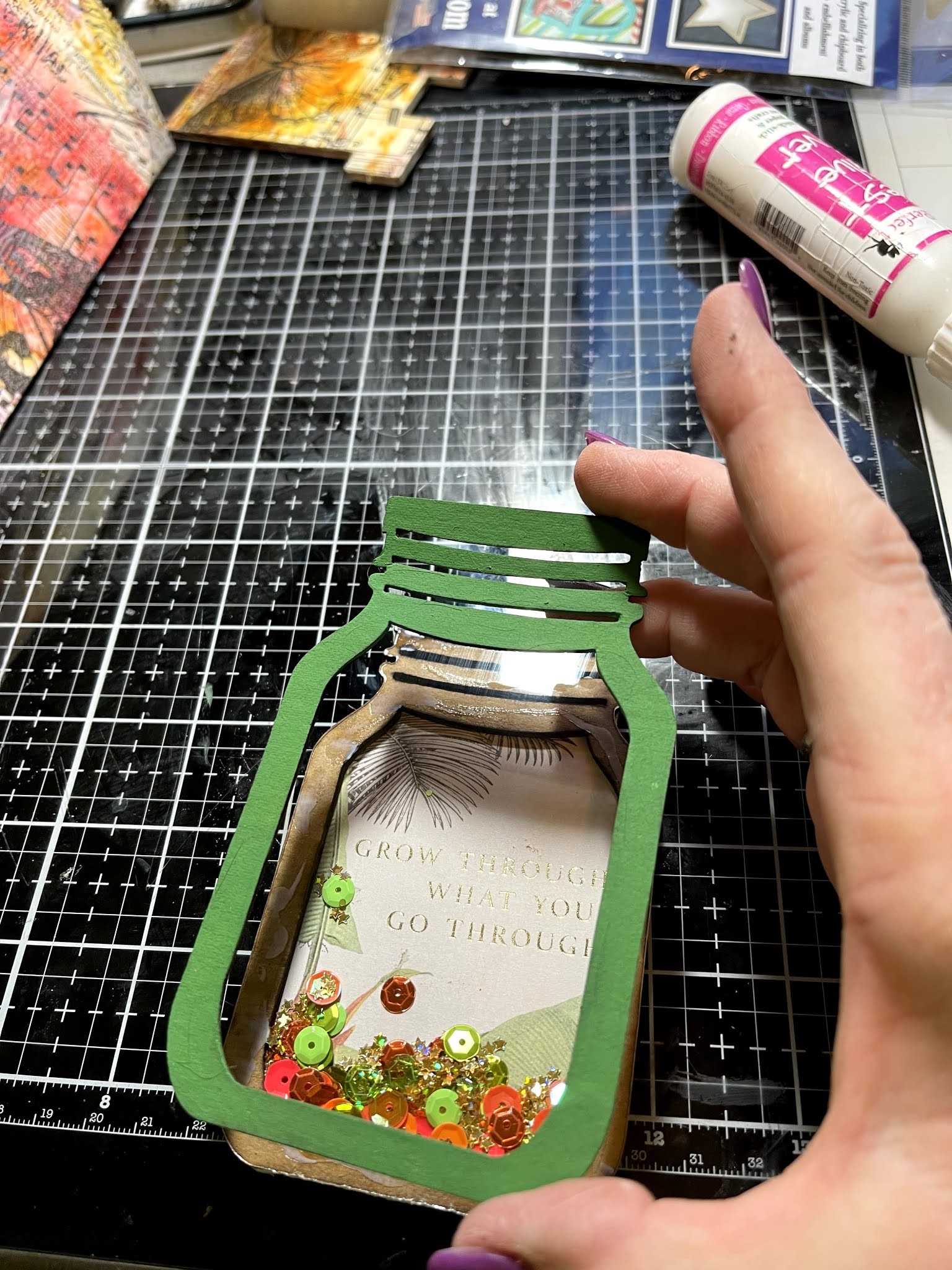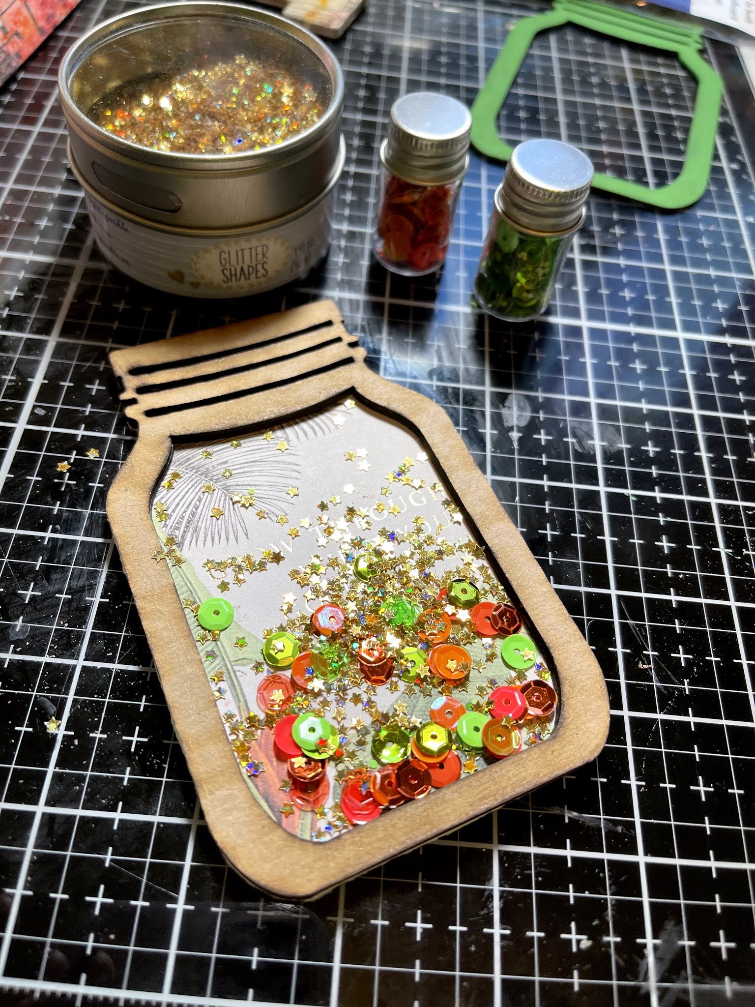 Greetings1 Today I am excited to share this Shaker box magnet I created using Clear Scraps Shakers . Clear Scraps has so many fun and creative shakers to play and create with! For this project I chose to play and create with the Clear Scraps Mini Shaker Mason Jar. And these shakers are the perfect size to add a magnet to the back to allow you to display them on your refrigerator or file cabinet!
