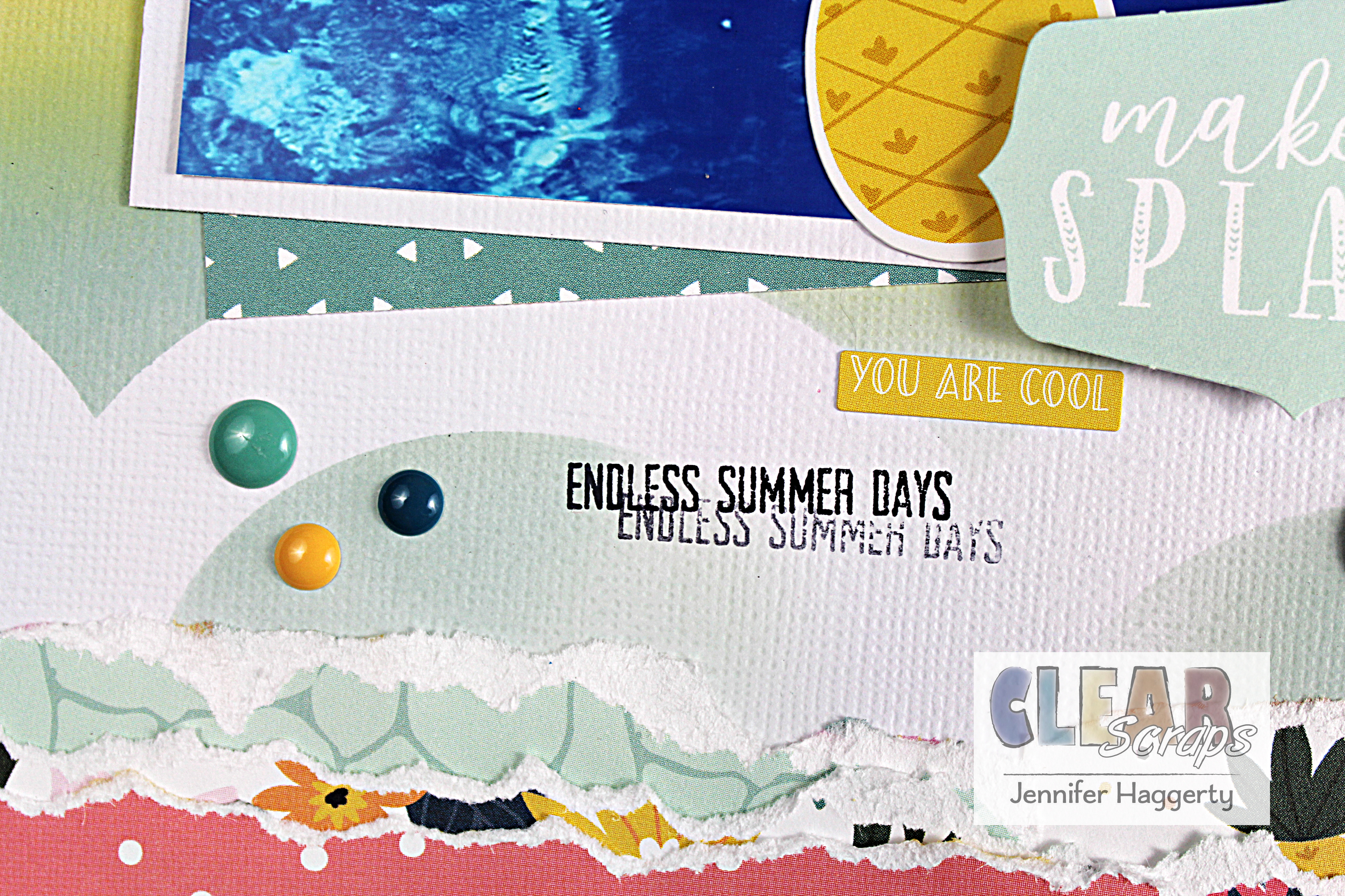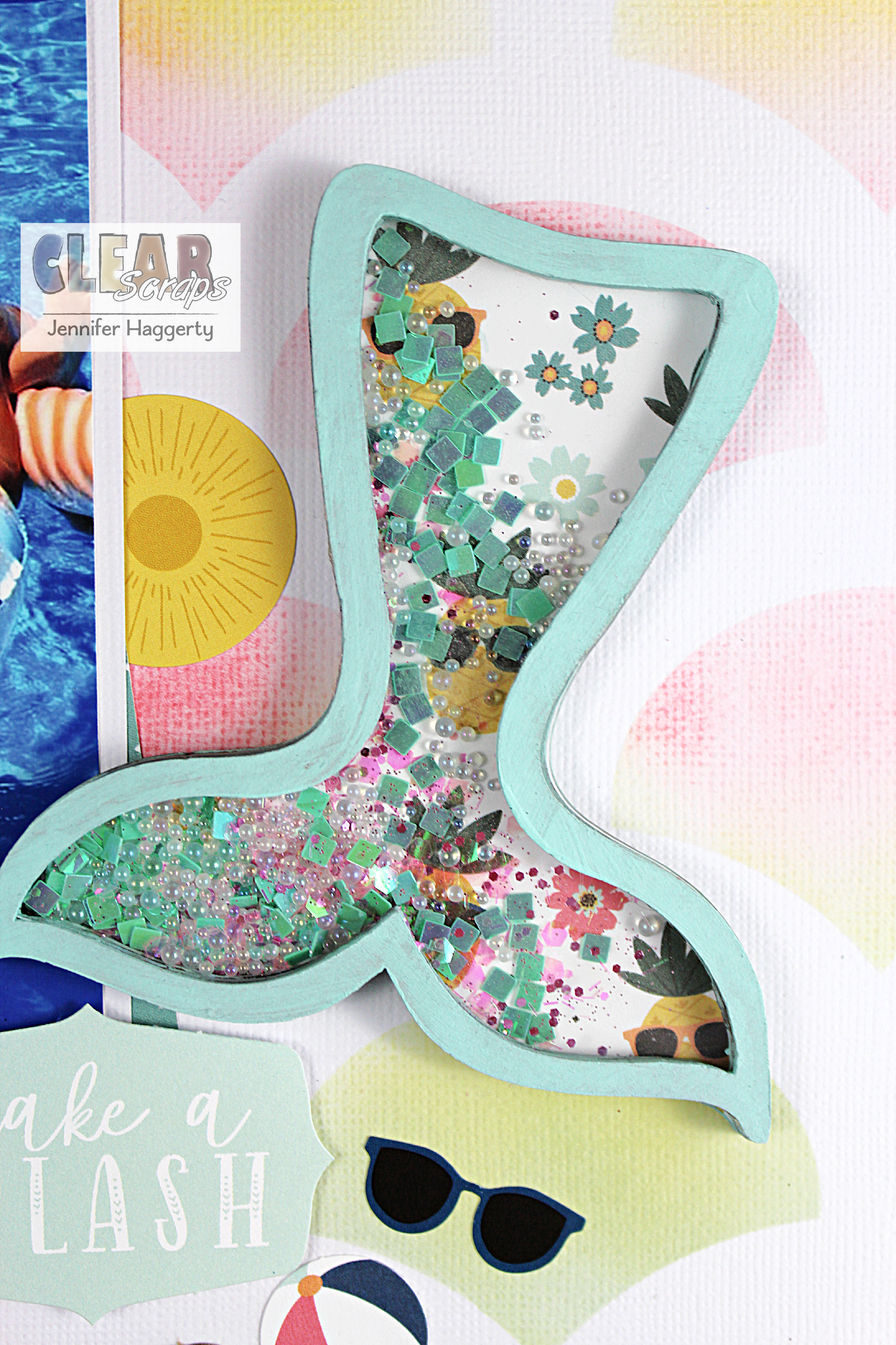 Hello! It's Jennifer here on the blog today to share a layout I created with some awesome Clear Scraps products! Summer is in full swing and I am loving the warm days and extra sunlight! Which of course means time outdoors and fun activities like hanging out at the pool! I documenting this adorable photo of my niece and nephew swimming and thought the Fin Mini Shaker Shape would be the perfect focal point!