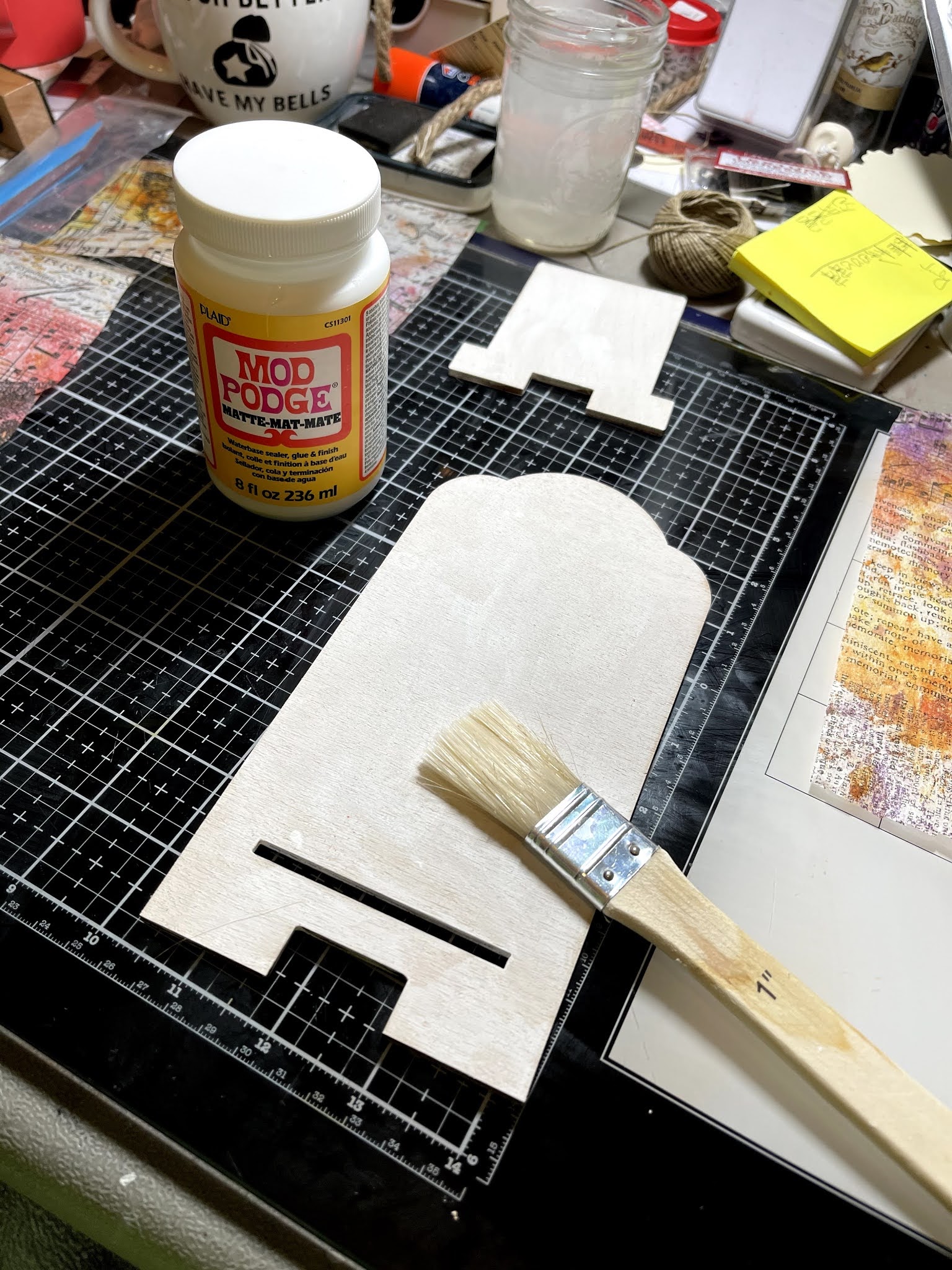 Apply a layer of mod podge to your Clear Scraps Vintage Wood Phone Stand.