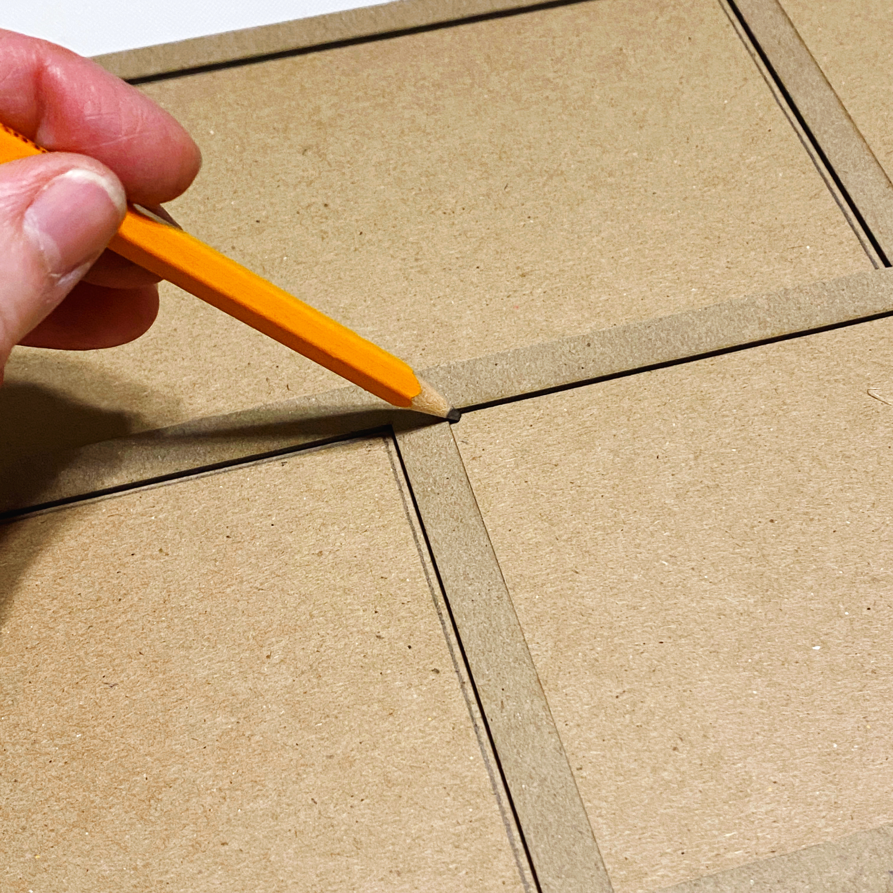 So I placed one of the frame pieces over the back piece and drew around the inside of each opening…