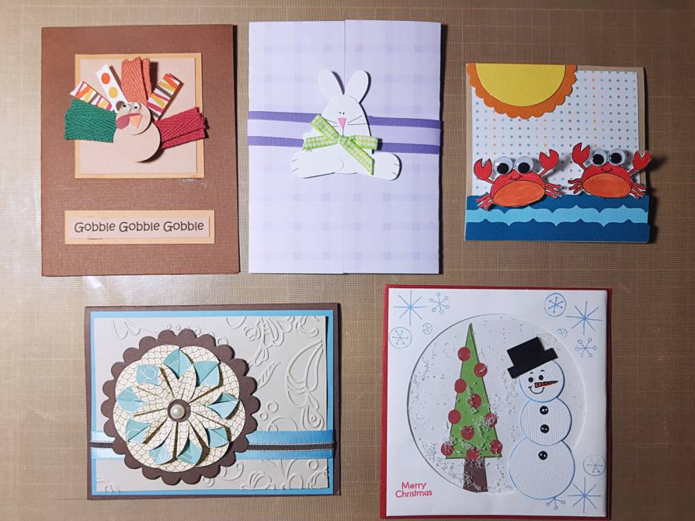 ▼ These are part of the cards I picked up to use on this project that were created by my mom-in-law years and years ago. I removed the elements from these cards and planed to assemble them on the wood shape. The idea was to create a wall hanging with four seasons.