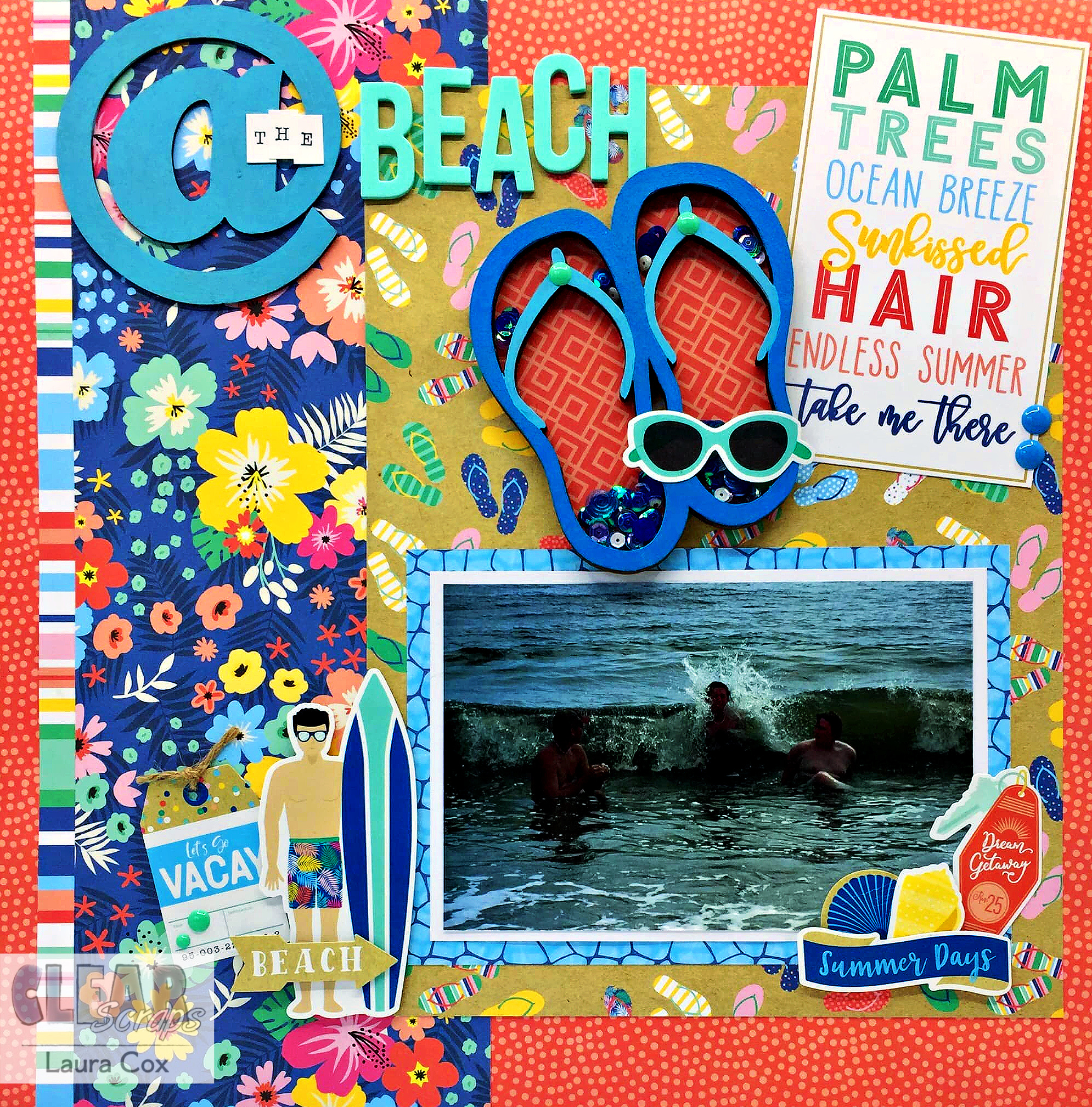 Clear Scraps Mini Shakers really do that! For this LO I used the Flip Flops Mini Shaker.
