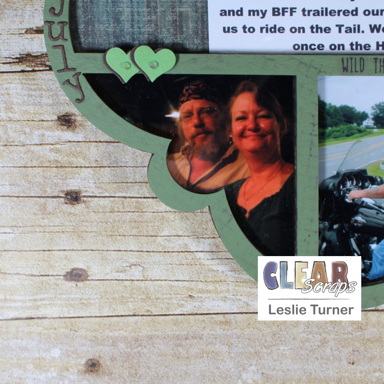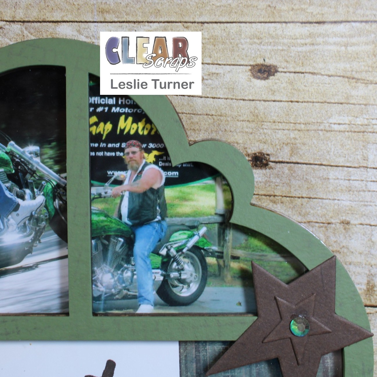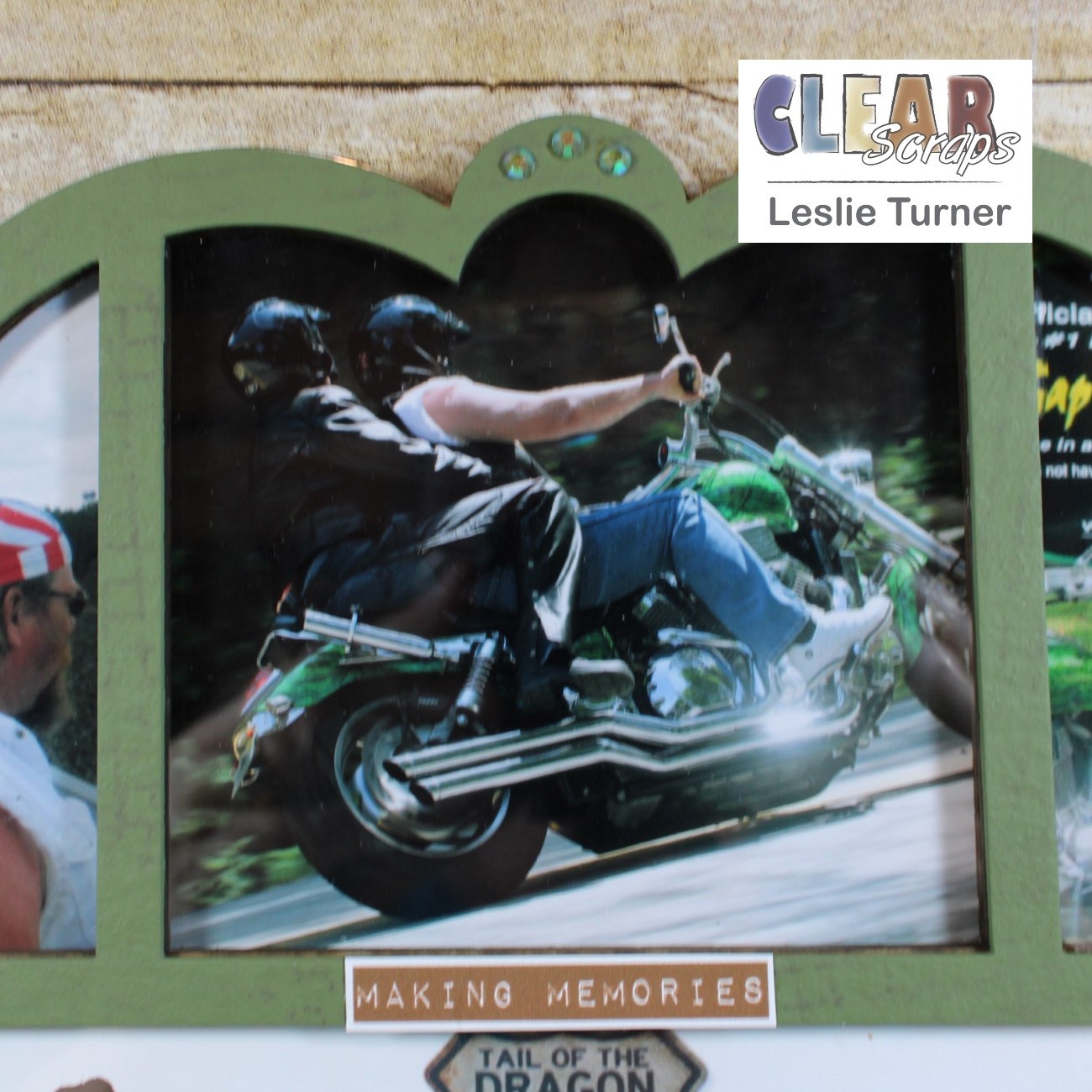 Hey, everybody! Leslie here, sharing a project documenting a road trip to Deals Gap Motorcycle Resort with a group of friends back in July 2010. I used the Scallop Circle Printer Tray Frame which I painted with green chalk paint. Hubby and I rode the Tail of the Dragon twice on two different motorcycles. We rode the Harley on our road trip with our friends, and my best friend from high school and college trailered our Honda VTX so we could ride it on the Tail also. What fun we had! This printer tray frame is the perfect product to document our amazing trip!
