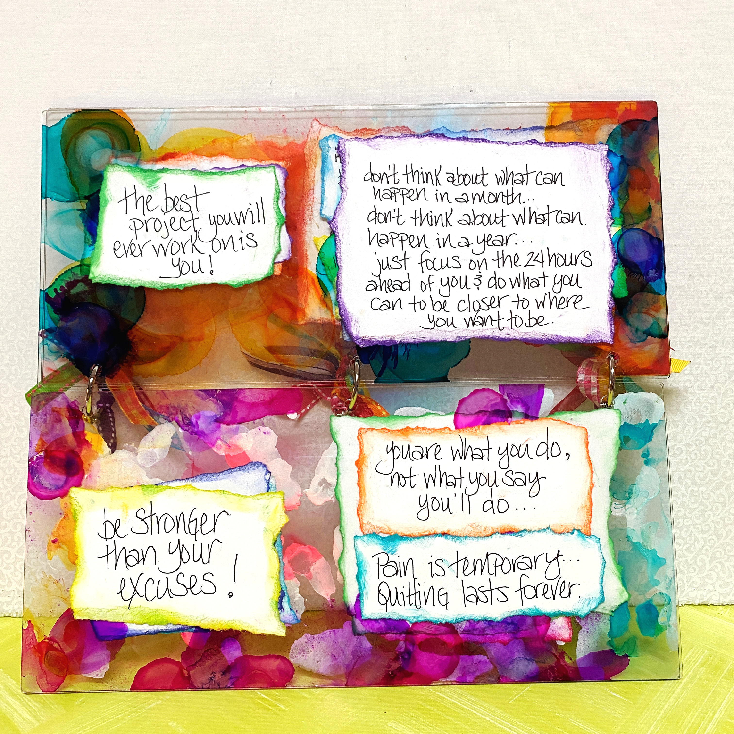 I thought I'd make myself a mini album to put some of my favorite quotes in. I wanted it to be bright, fun and colorful to keep me inspired to look through it daily.