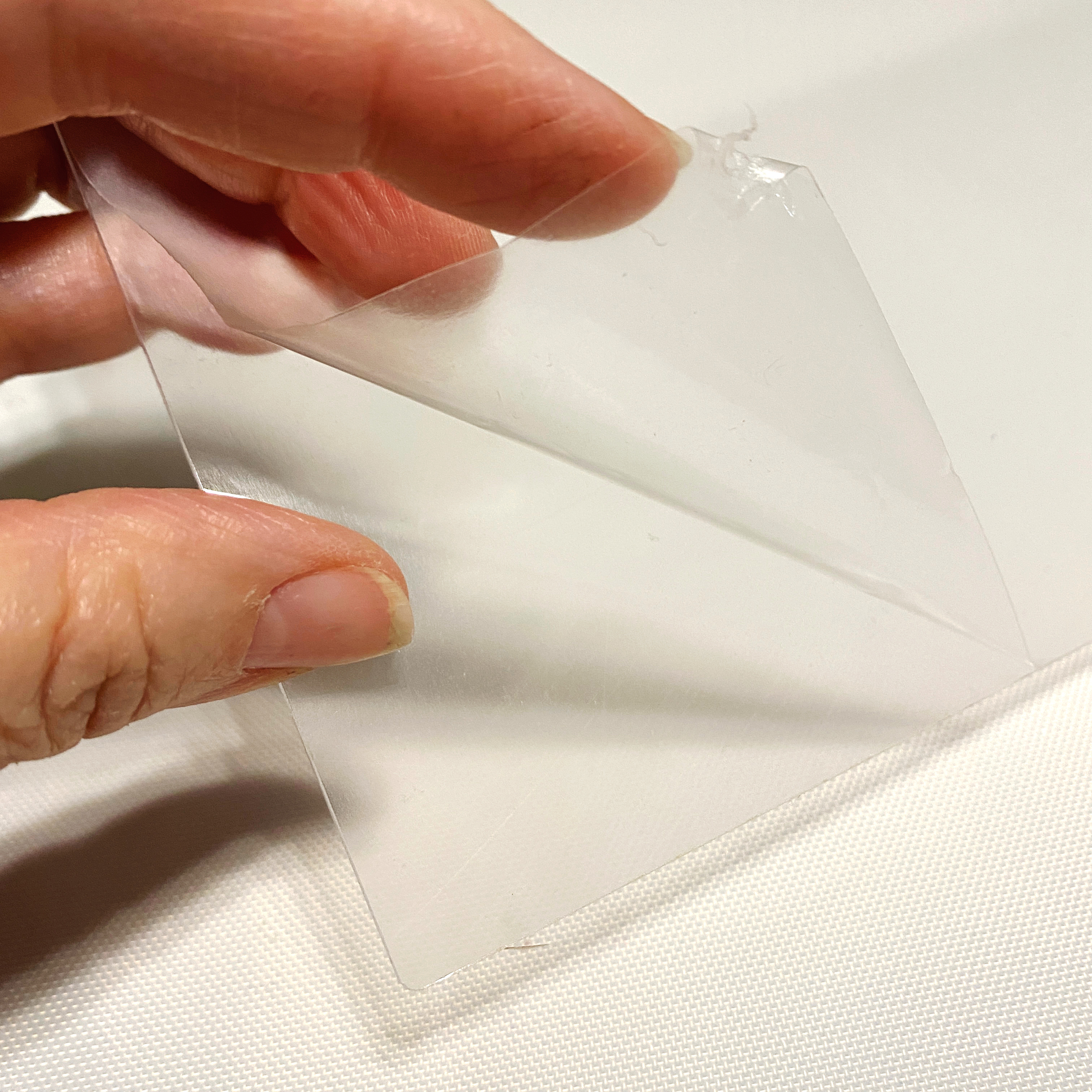 All of Clear Scraps Acrylic products come with a protective film on both sides. For this project, I wanted to leave the film on one side while I worked on the other. This way, the backsides of the pieces would all stay clean…