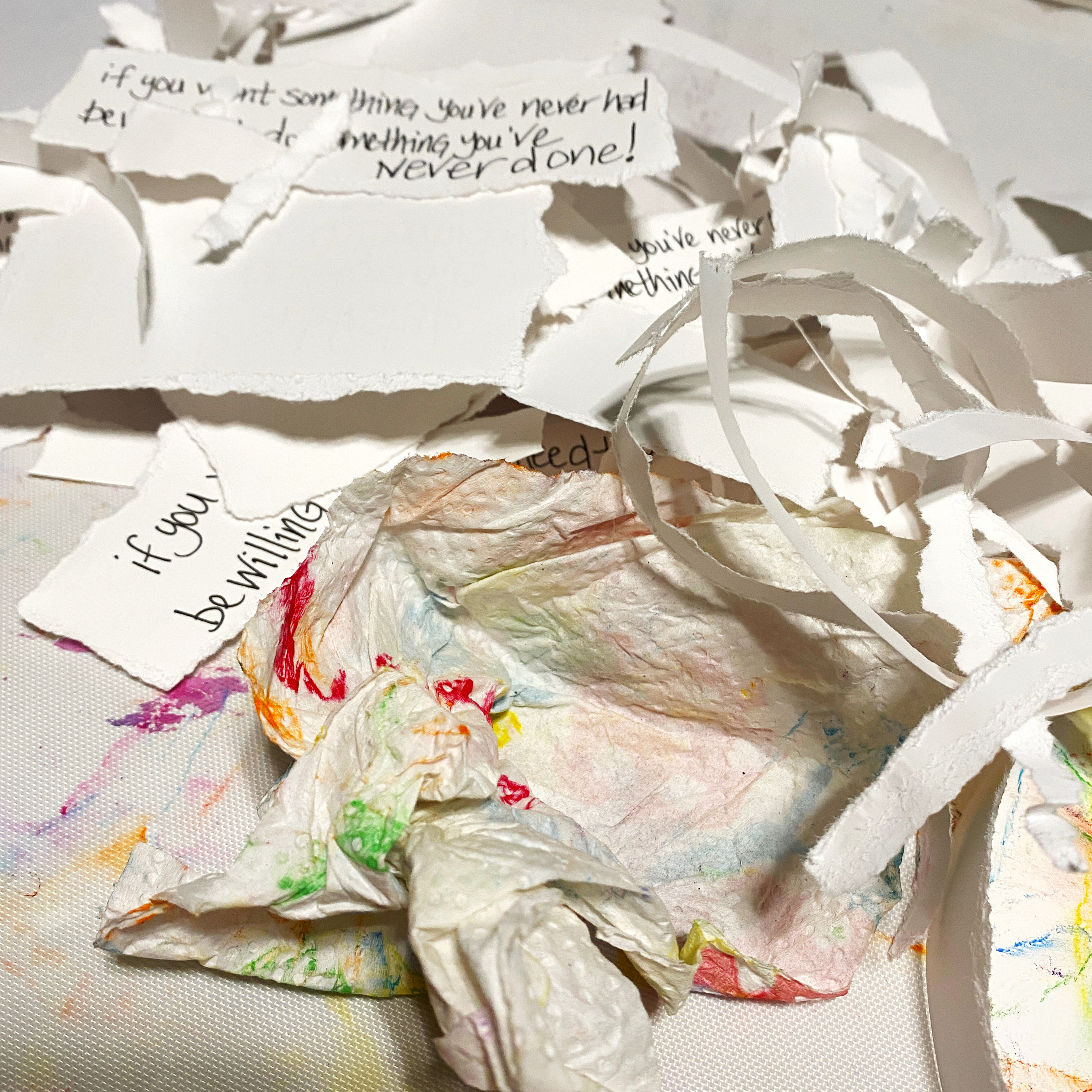 I wanted the colors on each page to layer with colors on the other pages to create new colors when the pages were stacked. With that in mind, I selected primary colors and kept one color family per page.