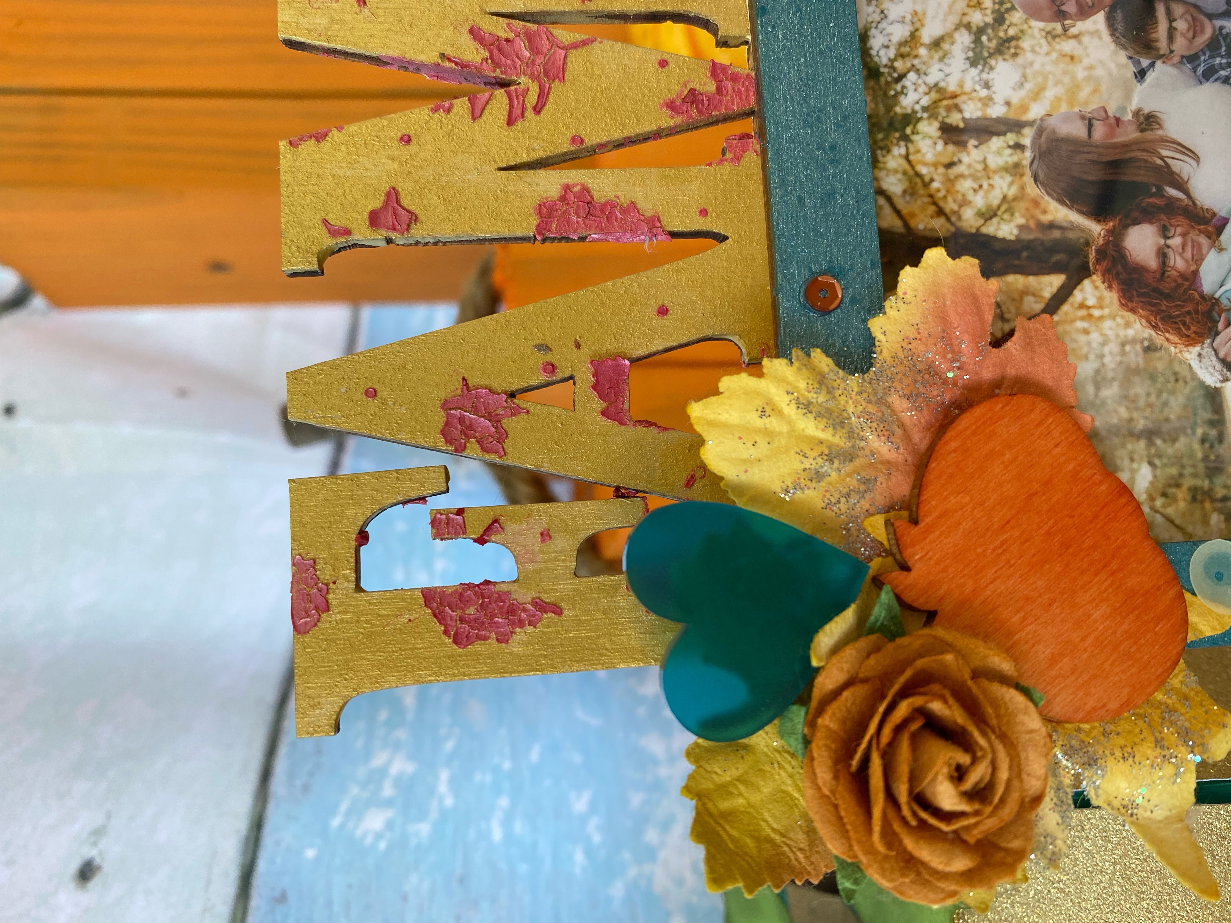 I am so excited to be guest designing! I have always loved creating off the page, from all things paper, to refurbishing. In this instance an adorable wooden frame! I love the versatility of these frames! Here is a quick walkthrough on how how I decorated this Family Desktop Wood Frame!