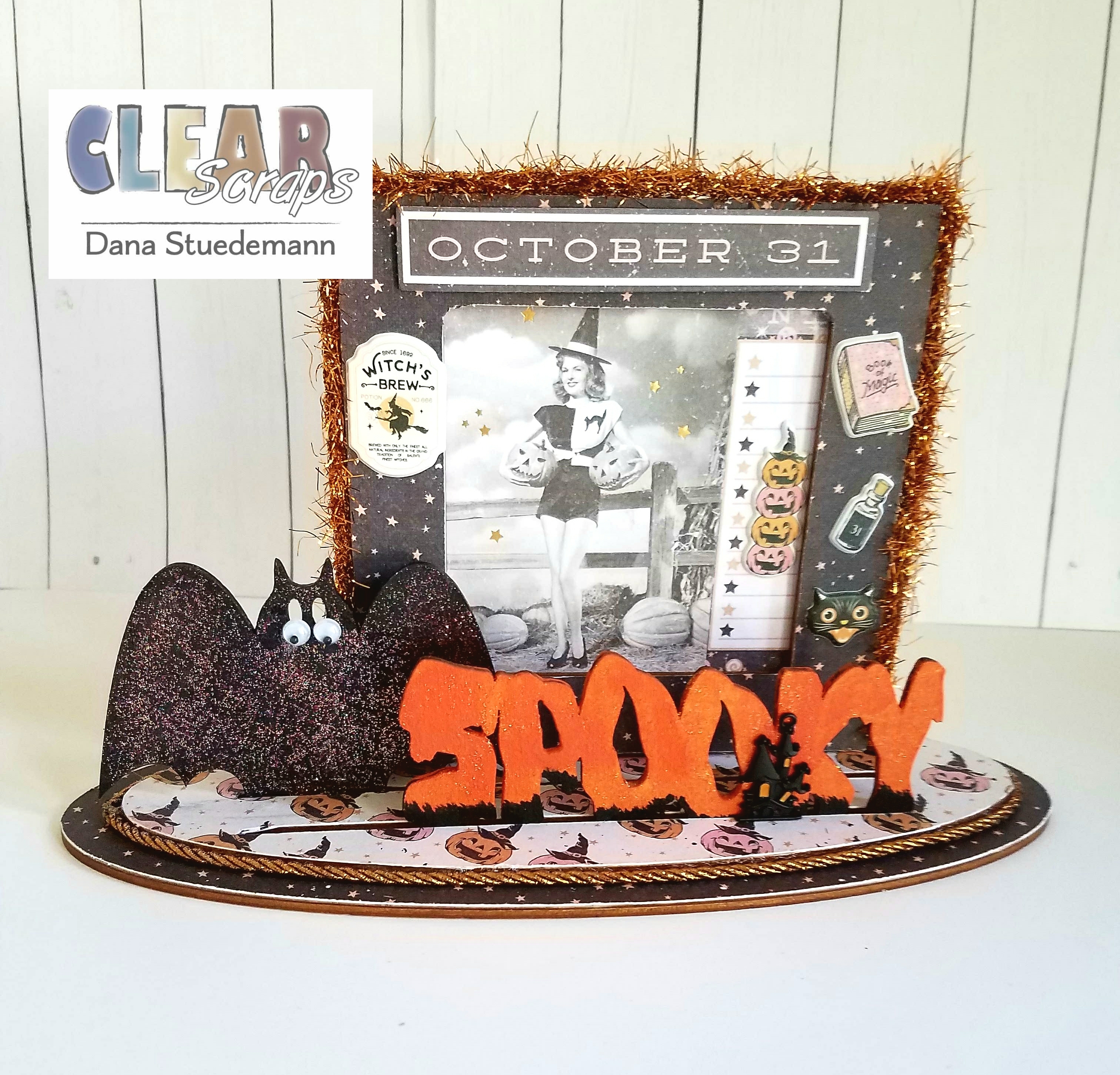 Dana here! I'm sharing a Halloween project today featuring one of the new Clear Scraps 3D Frameables! They are all so cute, you may want to order more than one! I chose the Spooky-Bat Word N Shape Click Here along with Clear Scraps Base and Square Frame. Click Here
