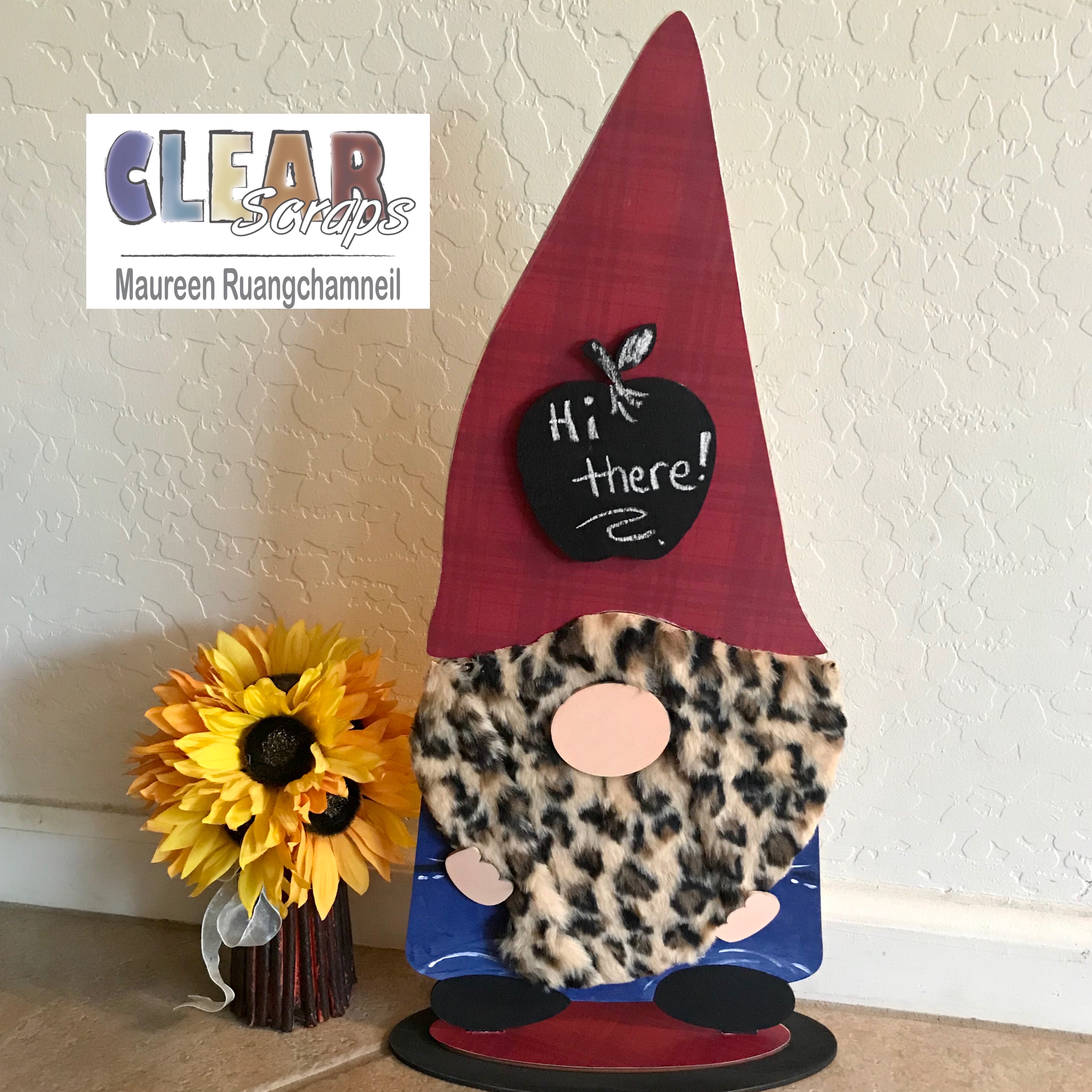 Hello Clear Scrap friends! I'm back with a home decor project that will easily take you all the way through the holidays. As soon as I saw the XL Wood Gnome, I knew he had to have a spot next to my home fireplace. With the Clear Scraps collection of wood shapes, I can change the items on the hat for any season too. I'm so excited to make items for his hat later on to switch out with each holiday. I'm even more excited that my gnome will have a "real" fur beard too!