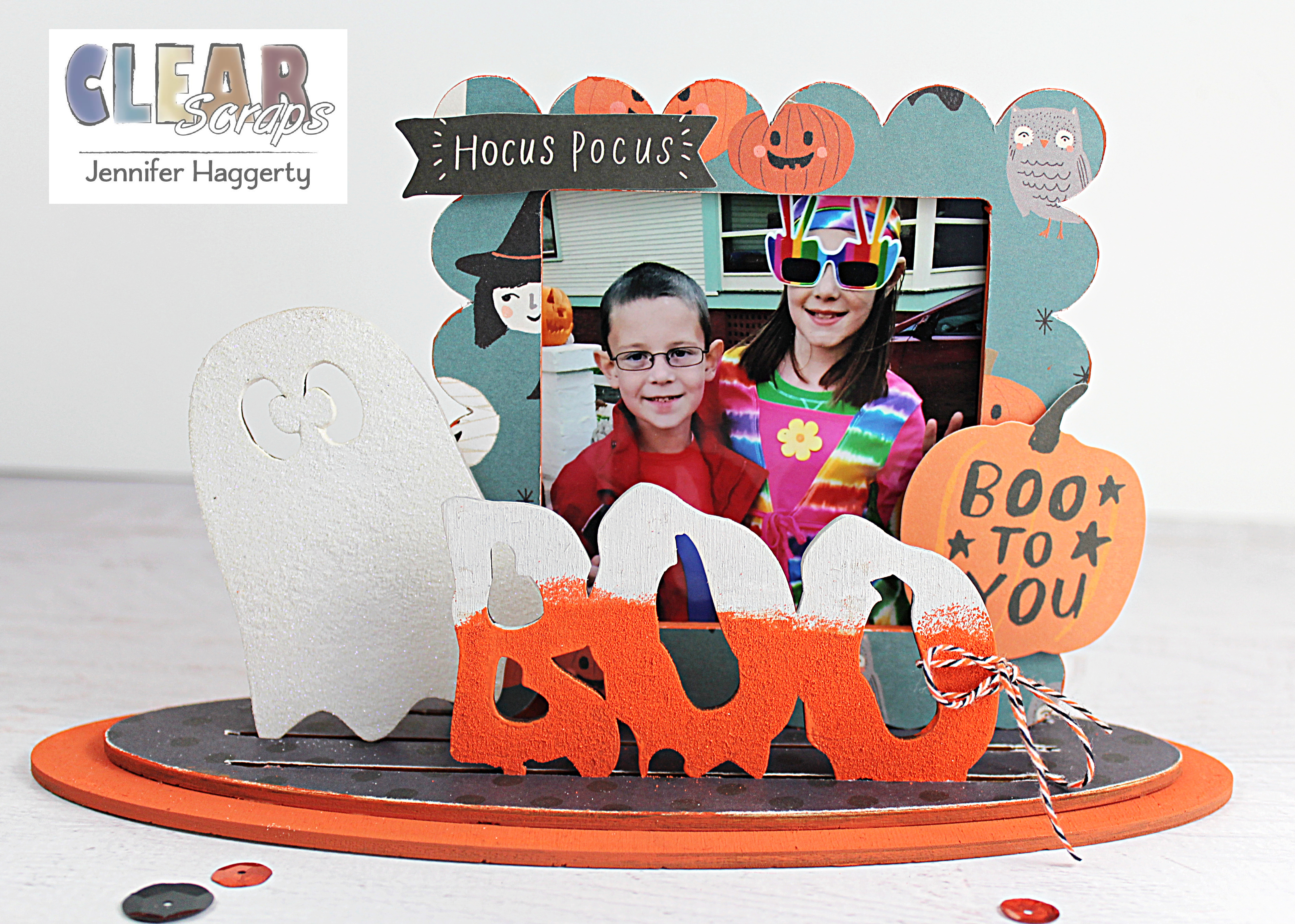 Hello friends! Halloween is almost here and today I'm sharing one of the new 3D Frameables that were released this year! If you haven't had a chance to create with these fun home decor pieces you must try them! There are many different combinations of frames + Words N Shapes you can pair together! For today's project I used the Boo-Ghost Word N Shape along with the Scallop Frame with Base.