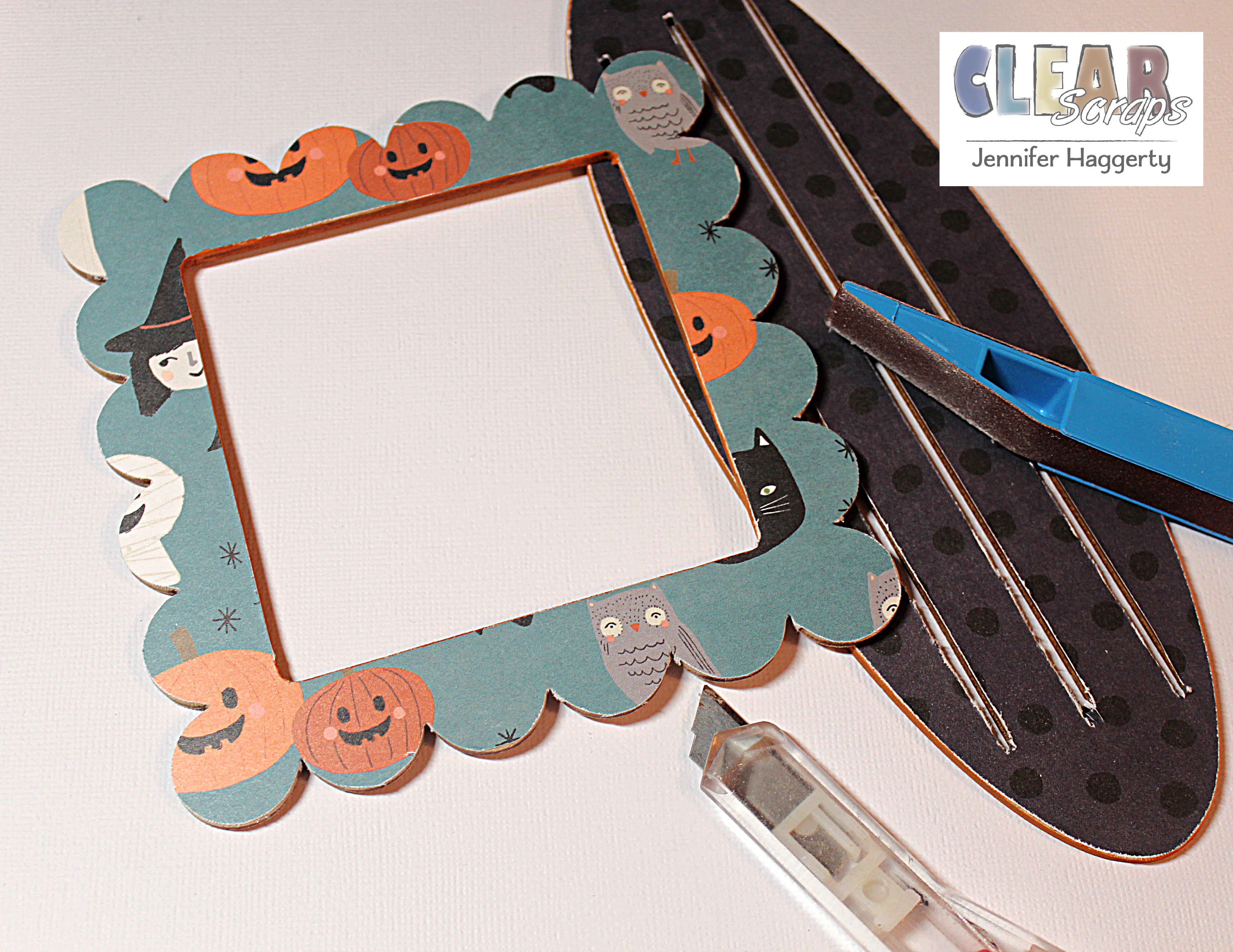 I trimmed a photo to fit my frame and adhered the Scallop to the base as shown. It helps to use clips to hold the pieces together as they dry.