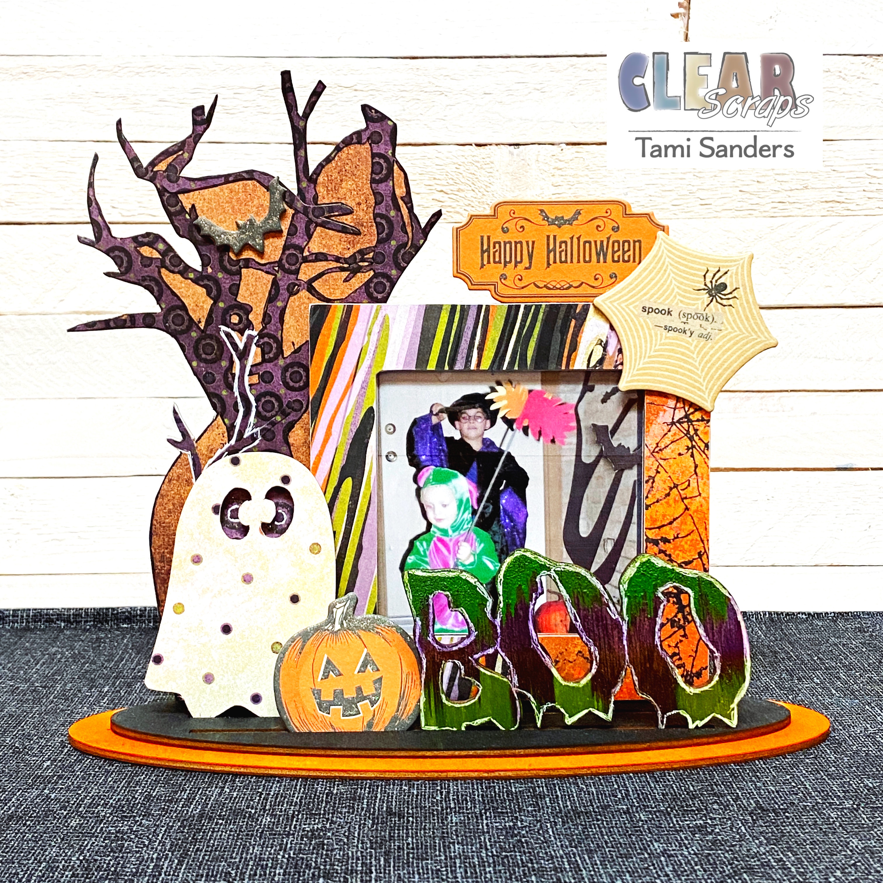 Clear Scraps: 3D Frameable: Square Frame and Base and Boo & Ghost Word Shape and Sanding Stick