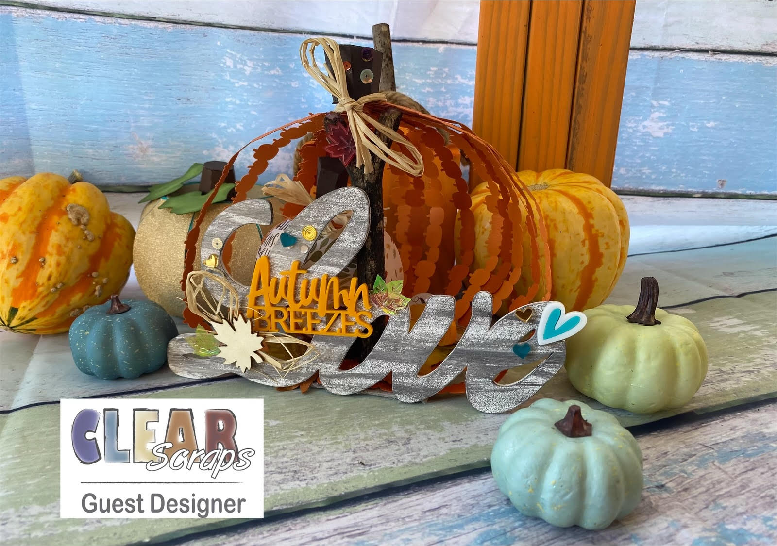 Along with my pumpkin, I added some leaves, raffia, a pumpkin flair, an acrylic pumpkin, making them stand up with some folded chipboard.
