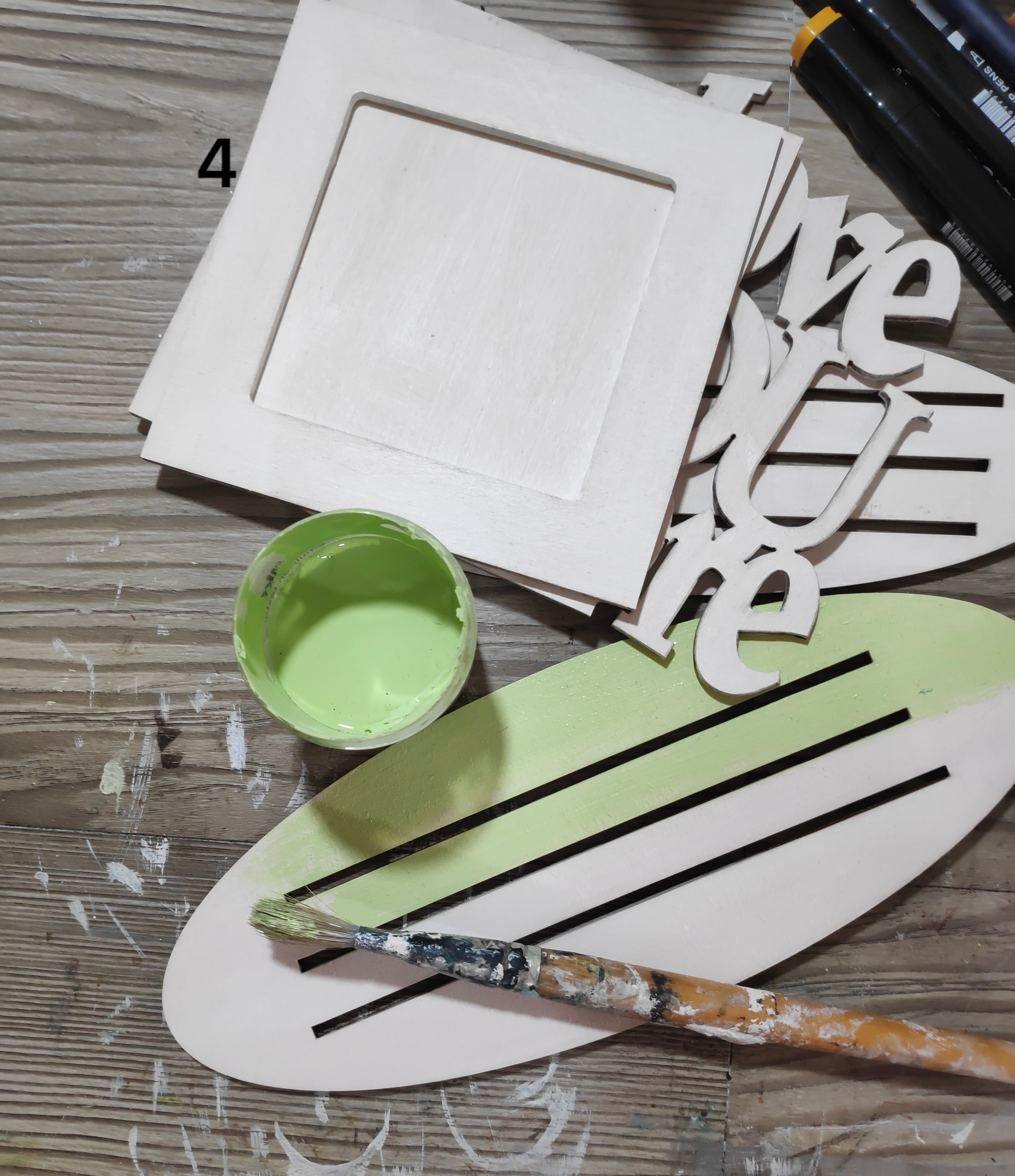I have used white Gesso to prime the wood frames and the Wood Quote.