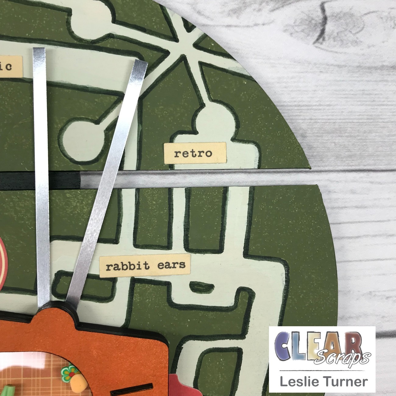 Hi everybody! Leslie here, sharing a retro home decor piece featuring the Medium Circle DIY Pallet Shape decorated with paint, the 12" Funky Boxes Mascils Mask/Stencil and markers, along with a Mini Shaker Retro TV with Sprinkles Groovy Flowers and Sprinkles Lime Confetti as the shaker filler! Oh, and the retro thrift shop word stickers! This project was so stinkin' fun and brought back so many good memories! I know I'm telling my age but I distinctly remember the groovy green and orange color palette so many people had in their homes (and clothing) in the 70s! Yep, those were the good ol' days!