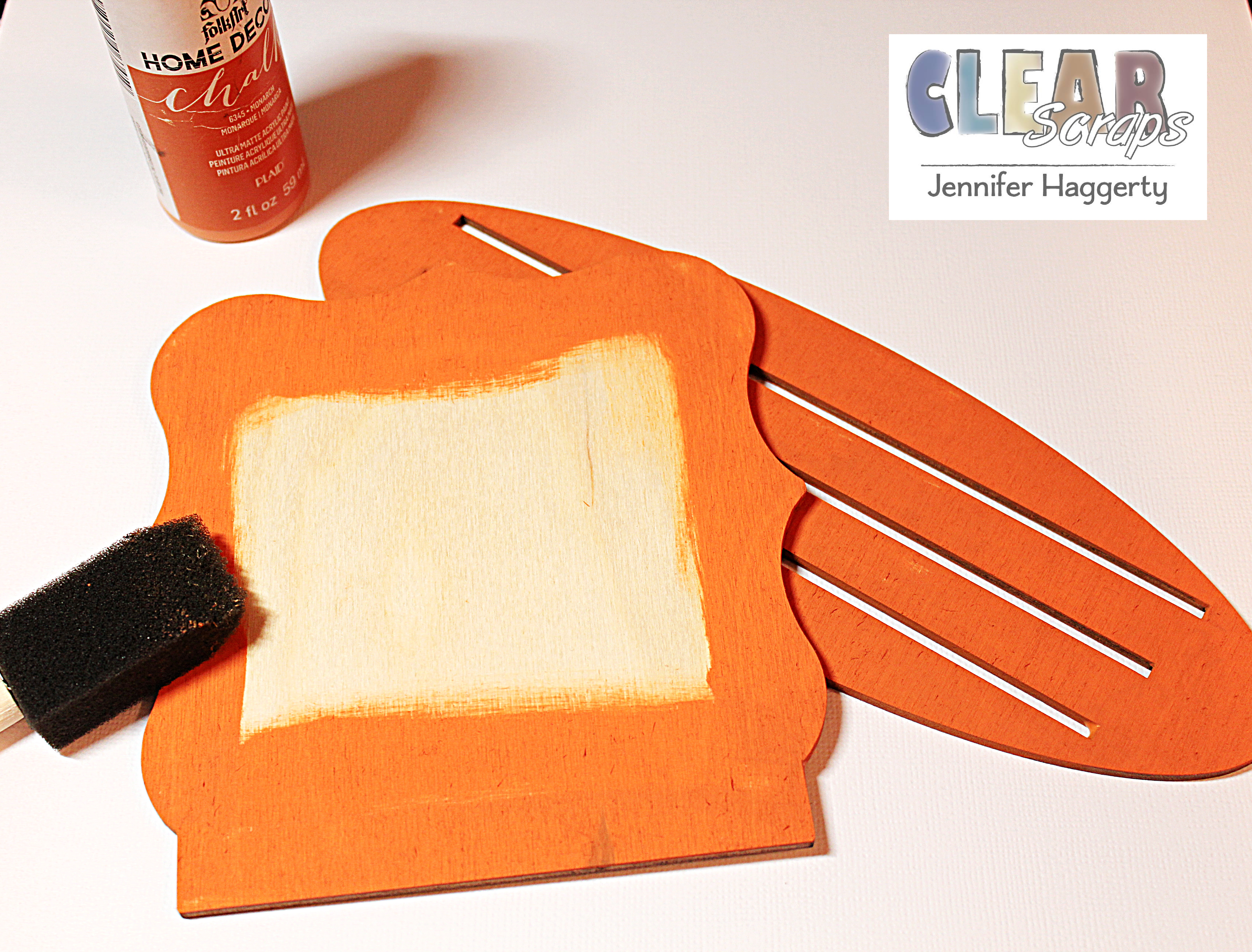 Using orange chalk paint, I applied paint to the outside edges of the frame base as well as to the smaller oval on the base.