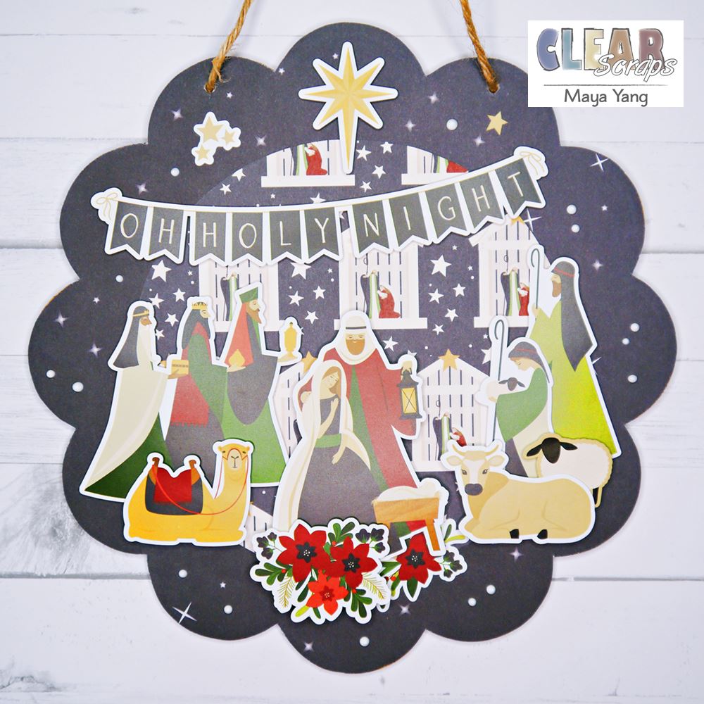 Hello Clear Scraps friends! This is Maya here on the blog today. How was everyone's Thanksgiving holiday? Can't believe Christmas will be here in a month and today I'm sharing a Nativity Wall Hanging for this holiday season featuring the flower wood shape. Let's check it out!